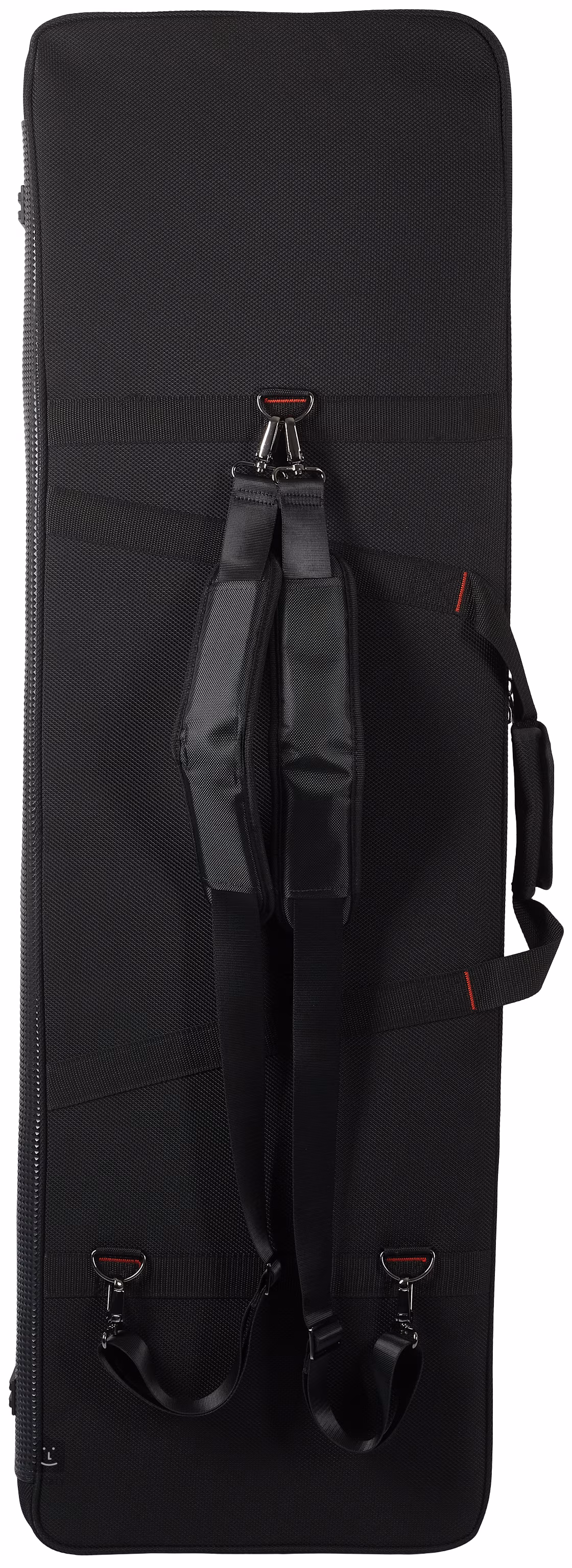 L'étui est doté d'une grande poche frontale pouvant accueillir des pédales de guitare, des câbles ou des livres de musique. Une poche plus petite permet de ranger les petits accessoires tels que les médiators, les accordeurs ou les cordes. Au dos de l'étui, des sangles simples permettent un transport confortable. Une poignée latérale très pratique est également prévue.