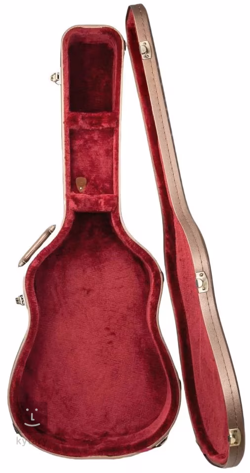 L'intérieur de l'étui est doté d'une doublure en peluche douce et d'un rembourrage riche, créant un environnement parfaitement sécurisé qui protège la guitare des chocs et des rayures. Un grand compartiment interne permet de ranger les accessoires, en toute sécurité : accordeur, cordes, capodastre et autres éléments essentiels. La poignée latérale souple, confortable dans la main, facilite le transport de l'étui. Le design luxueux de l'étui est accentué par d'élégantes ferrures dorées, ce qui en fait un accessoire non seulement pratique mais aussi esthétique pour le transport de la guitare en toute sécurité.