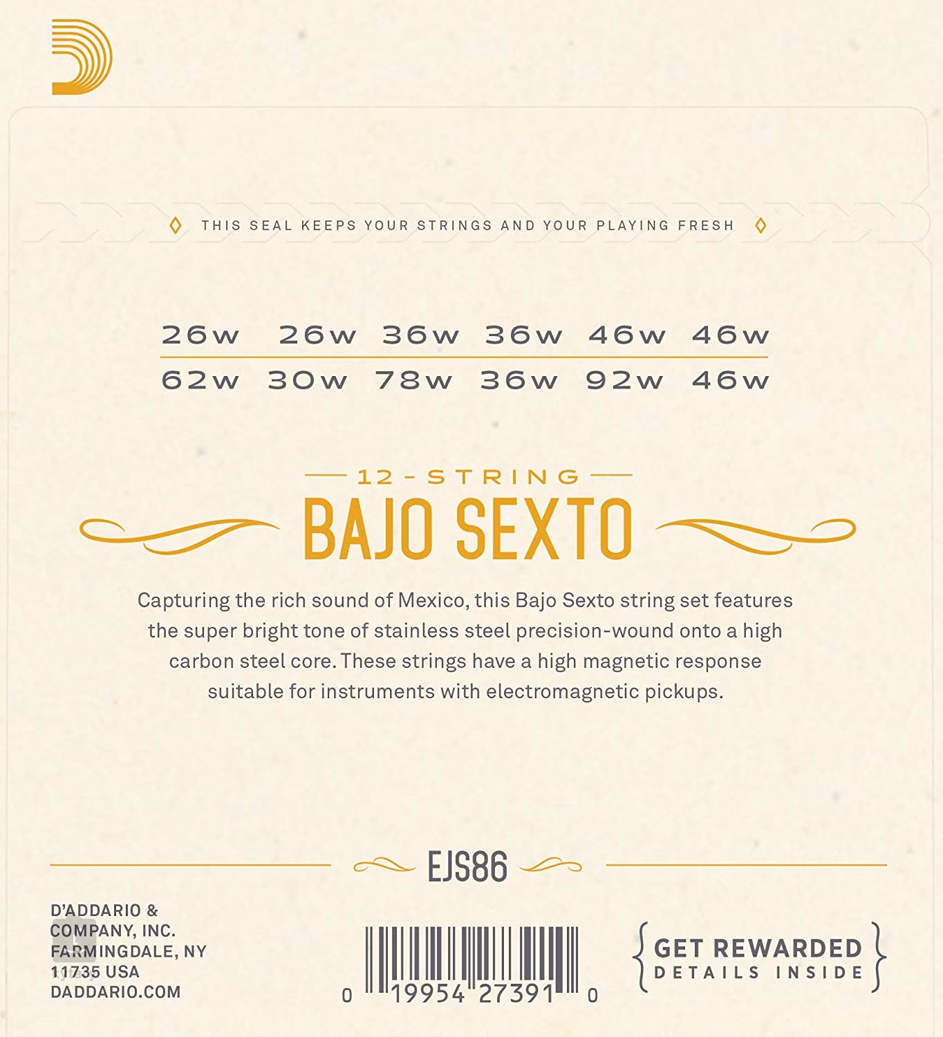 Ce jeu convient a l'instrument Bajo Sexto et les épaisseurs de cordes spécifiques sont .026/.026, .036/.036, .046/.046, .062/.030, .078/.036 et .092/.046.