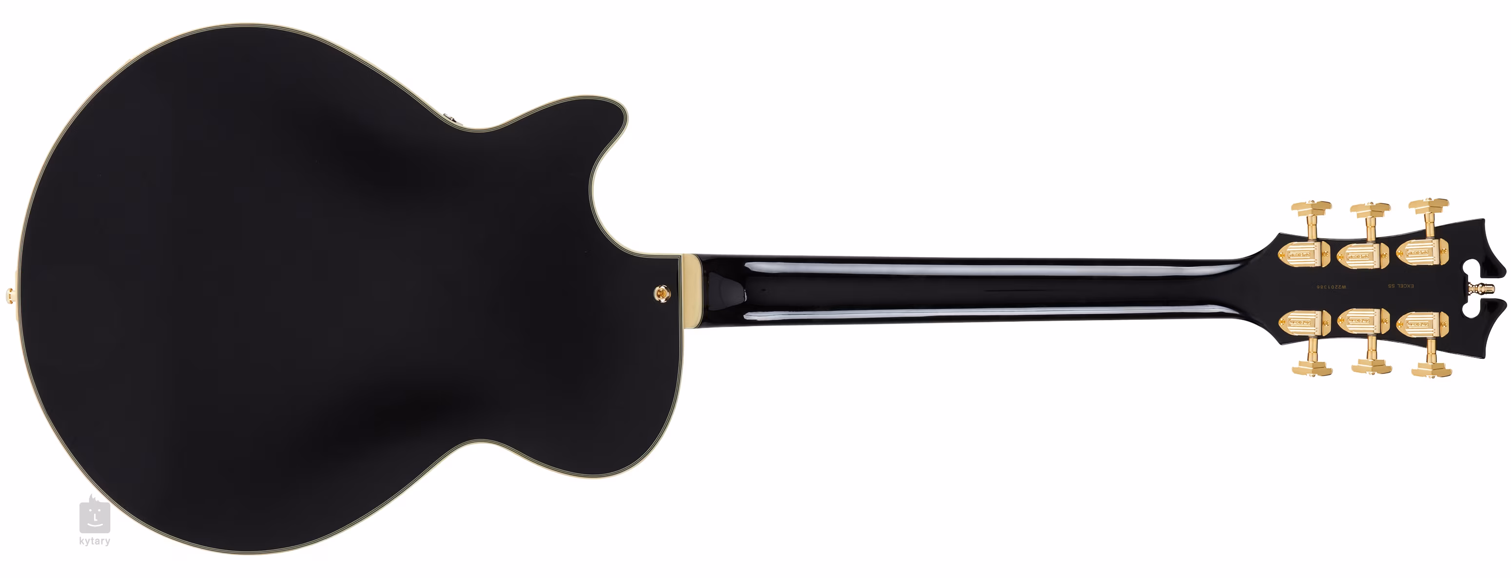 Le corps de la guitare est équilibré par une tête Art déco typique, décorée du logo et de l'incrustation en nacre de la société. Un accordage stable et un bon sustain sont garantis par la fixation des cordes à travers la frette zéro Graphtech TusQ dans les engrenages Grover 150 Imperial avec un rapport de 16:1 et à travers la tête TOM dans le style Art Déco. La finition luxueuse de la guitare est accentuée par un corps, une touche et une tête de manche multicouches, un pickguard Scalini à cinq plis, des capuchons de potentiomètre en ébène et un accastillage à finition dorée.