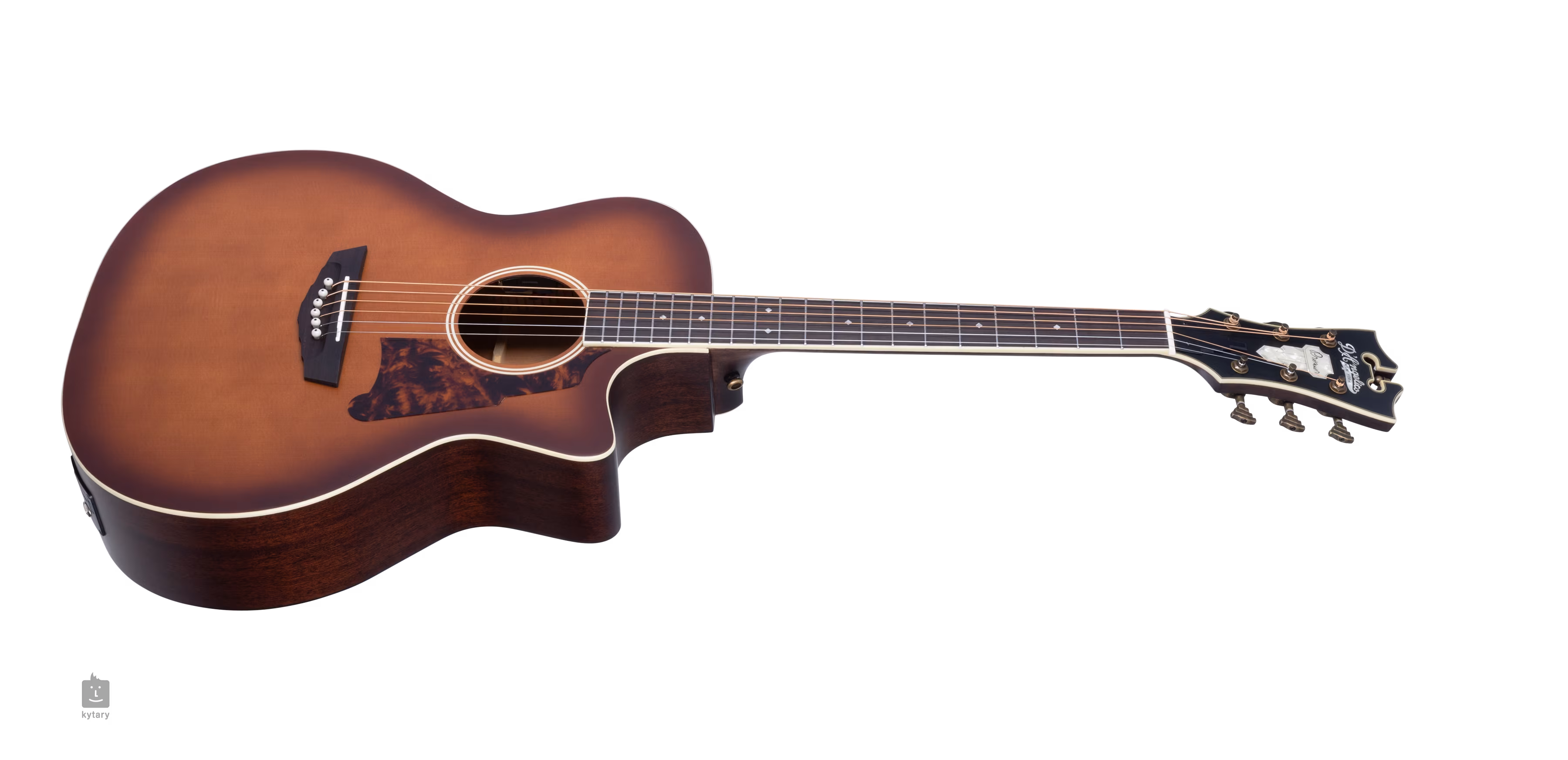 La façade de la PREMIER GRAMERCY Grand Auditorium CE Caramel Burst est en épicéa massif, tandis que le dos et les éclisses sont en sapelli stratifié. Une touche en palissandre avec 20 frettes Medium Jumbo est collée sur un manche en acajou au profil "C" plus étroit. Des repères de position en imitation nacre en forme de petits diamants facilitent l'orientation sur la touche.