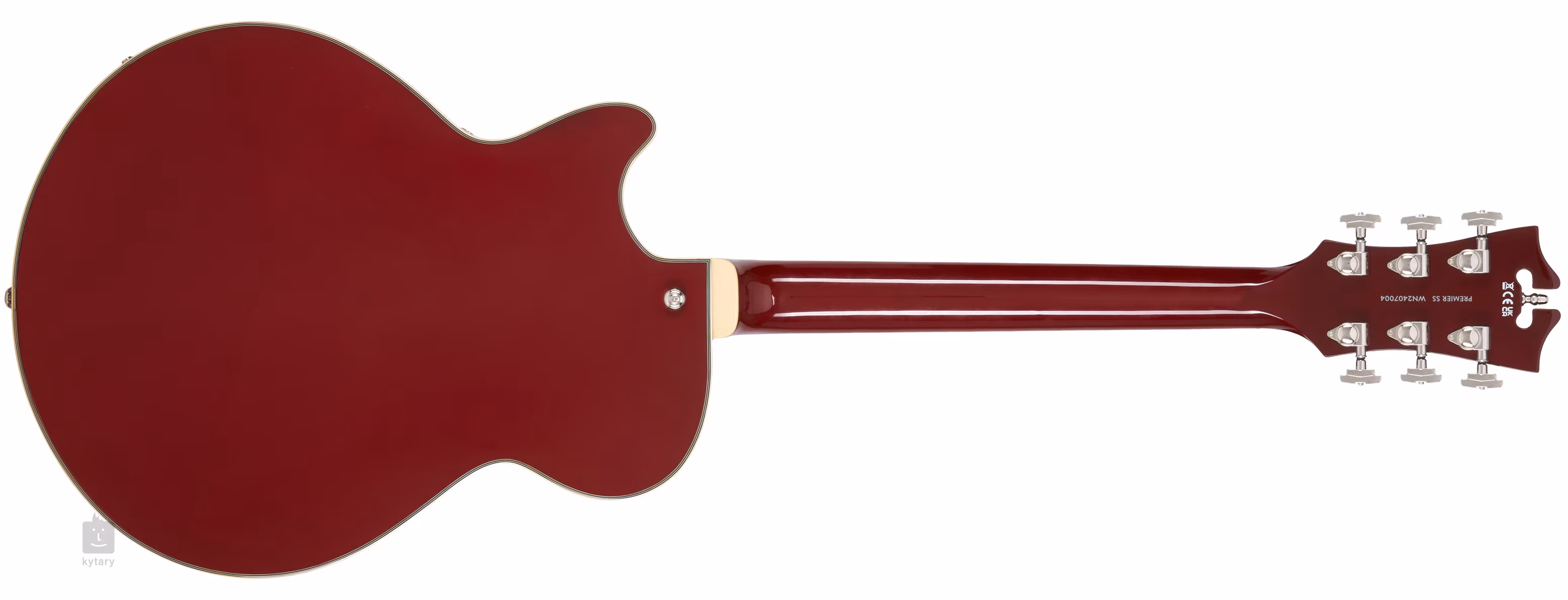 Le corps de la guitare est équilibré par la tête Art déco signée par la société et décorée d'un logo et d'une incrustation en nacre. Un accordage stable et un bon sustain sont garantis par le Graphtech NuBone XL zero fret dans les engrenages 14:1 et la corde TOM dans les longerons. Le look élégant de la guitare est accentué par le corps multicouche, la touche et la tête de manche, ainsi que par le pickguard Scalini à cinq couches.
