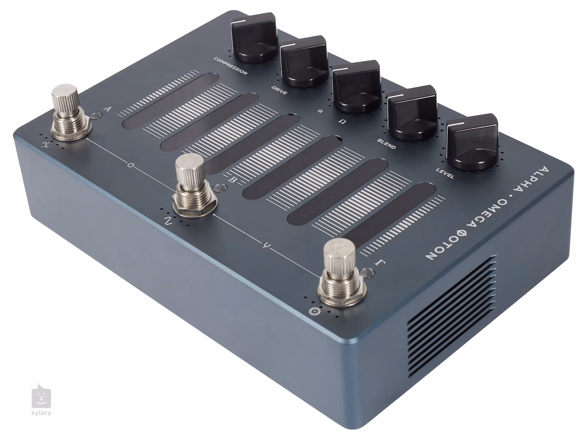 Le premier de la gamme d'effets est le compresseur, qui peut être facilement contrôlé à l'aide d'un simple potentiomètre. Une nouvelle technologie intelligente vous permet d'ajuster automatiquement les rapports idéaux entre la force du signal d'entrée et la compression, de sorte que même avec des niveaux de compression extrêmes, le signal conserve la bonne intensité. Vient ensuite le potentiomètre Drive, qui donne un coup de fouet à votre son et ajoute de la distorsion. Celle-ci peut être contrôlée plus en détail avec le potentiomètre Mod, qui permet de déterminer le rapport entre les circuits de distorsion Alpha et Omega. Le circuit Alpha permet d'obtenir un son percutant et précis avec une définition claire, tandis que le circuit Omega offre une distorsion brutale et sans compromis. En outre, la pédale est également capable de traiter un signal de sidechain avec un son propre, qui peut ensuite être mélangé avec le signal distordu à l'aide de la fonction Blend. Le potentiomètre Level sert alors de réglage de volume principal. Les curseurs tactiles uniques et extrêmement précis, que vous pouvez utiliser pour contrôler l'égaliseur programmable à six bandes, sont également spéciaux.
