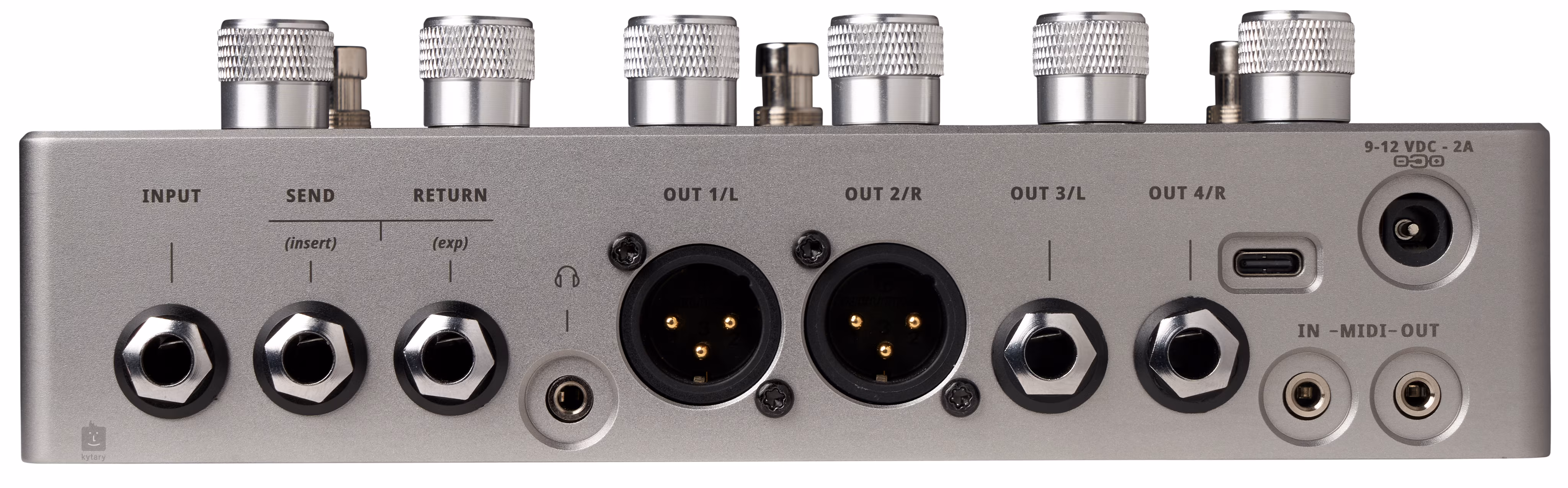 Un autre avantage est la boucle d'effets polyvalente, qui peut être utilisée comme un envoi stéréo ou un insert mono, ce qui permet une flexibilité maximale lors de la connexion d'effets externes. À cela s'ajoute la possibilité de connecter une pédale d'expression, ce qui vous permet de contrôler de manière transparente divers paramètres d'effets en temps réel. Le ground lift intégré élimine les ronflements indésirables lors de la connexion des sorties XLR.