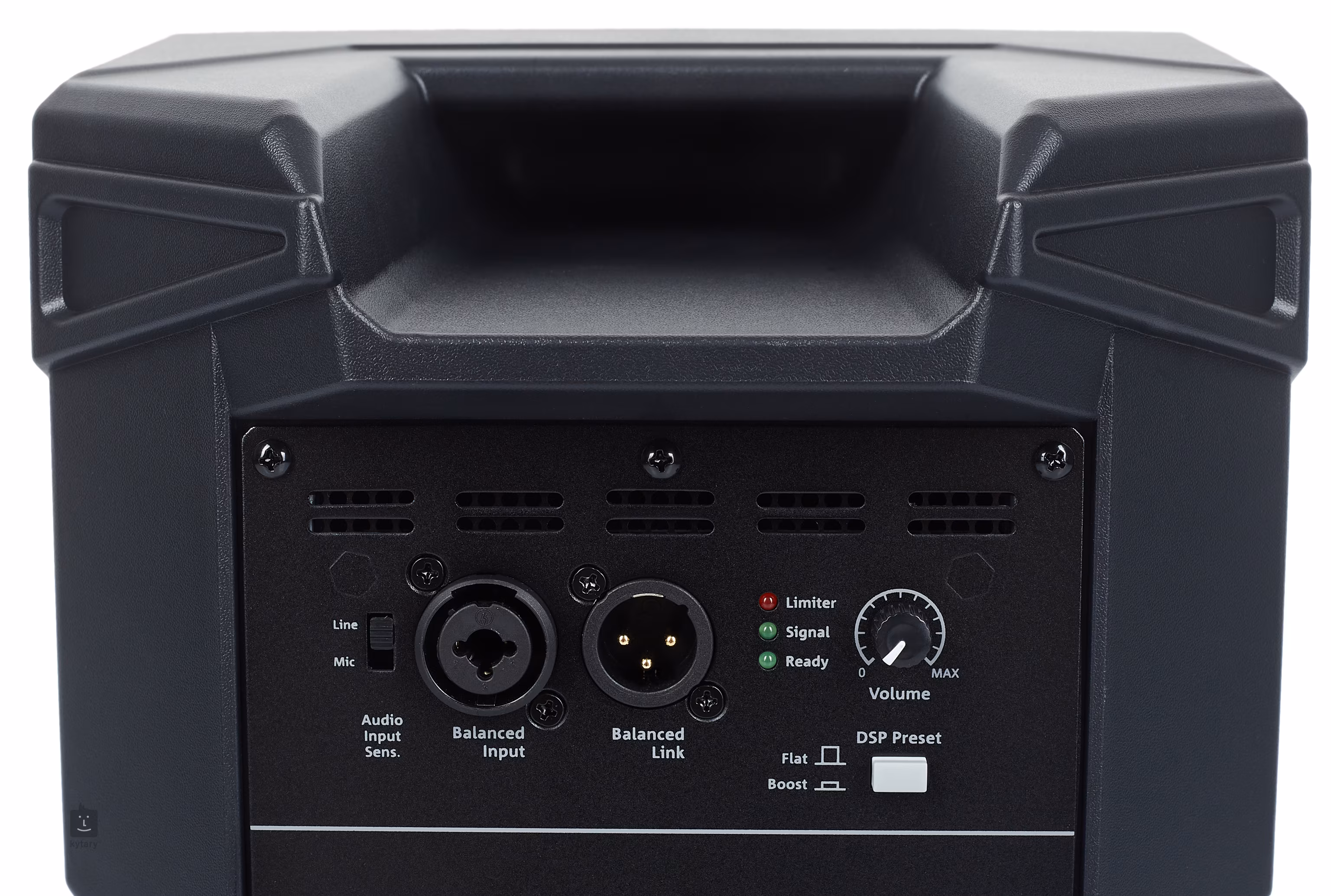Une couverture excellente et directe est assurée par une conception interne spéciale avec une dispersion sonore asymétrique, qui rend la reproduction plus claire meme dans les pieces avec un "écho" important. L'entrée combo XLR/jack avec commutateur de niveau de signal peut etre utilisée avec des microphones dynamiques et des entrées de ligne. Le commutateur DSP Flat/Boost permet de corriger les hautes et basses fréquences et une sortie symétrique permet de connecter un haut-parleur supplémentaire.