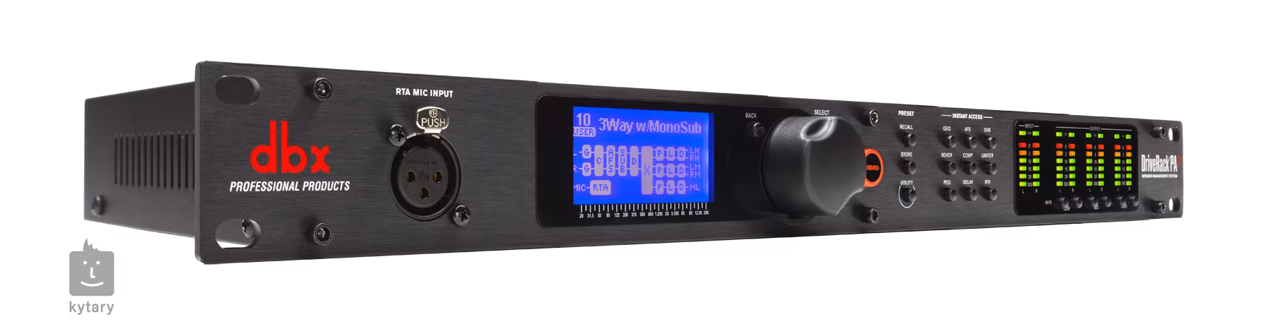 Le processeur d'entrée intègre des fonctions telles qu'un compresseur, un égaliseur graphique et paramétrique, une synthèse subharmonique et une suppression de la rétroaction. Le processeur de sortie, quant à lui, comprend un limiteur, un égaliseur paramétrique, un crossover et un délai d'égalisation.