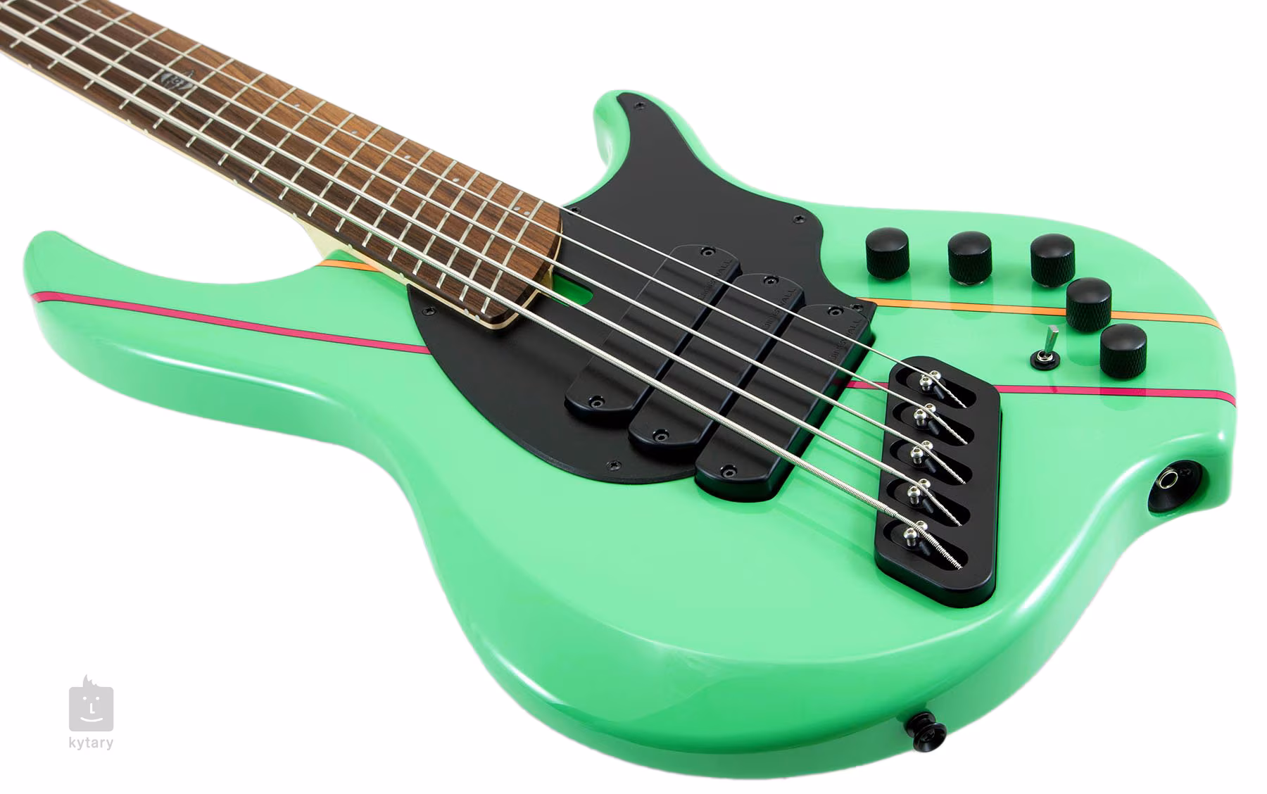 Le corps de la basse est en bois de nyatoh léger, le manche est en érable et la touche est en pau ferro. Parmi les éléments de conception intéressants, citons l'incrustation "Rio Eye" sur la 12e frette et le graphisme de la tête de manche inspiré des dessins de l'artiste Patty Palazzo, collaborateur de longue date de John Taylor. Le système de frettes signé Dingwall garantit une longueur de menza optimale pour chaque corde, ce qui contribue à une intonation et une tension des cordes excellentes, en particulier pour la corde de si grave.