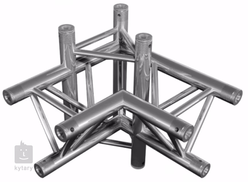 Le Duratruss DT33/2-C44-LUD est une pièce d'angle qui relie les quatre branches de la structure à des angles de 90° (type L + haut + bas). Le système de connexion rapide permet une construction rapide, ce qui sera apprécié lors des montages et démontages fréquents.