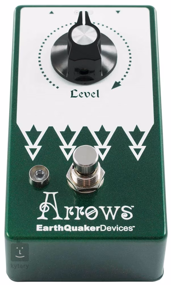L'effet de guitare Arrows est un amplificateur de préamplificateur analogique qui peut ajouter un gain supplémentaire à toutes vos boîtes de saleté (overdrive, distorsion, fuzz) ainsi qu'éclaircir le son de vos micros de manche. Elle augmente les médiums, raffermit les basses, éclaircit les aigus et pousse les sons d'overdrive les plus rock dans le domaine du gain élevé si nécessaire. La pédale est câblée en true bypass (commutation par relais, aucun signal audio ne passe sans source). Un adaptateur 9V est utilisé pour l'alimentation.