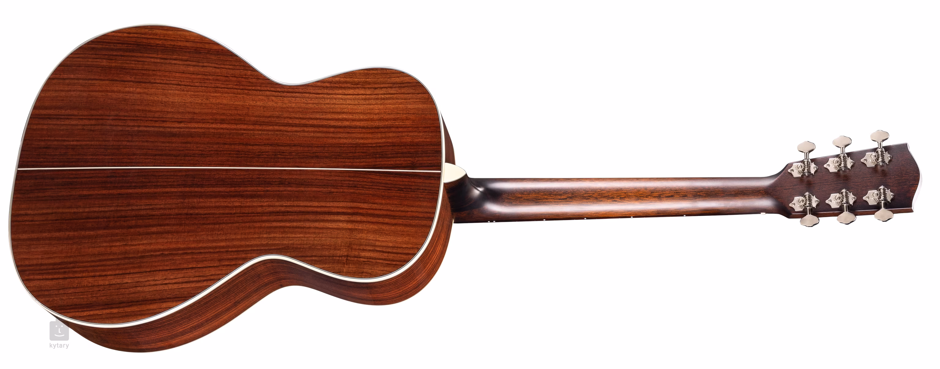 Les cordes sont maintenues par des mécaniques ouvertes en nickel et la touche en palissandre par une frette en os. La finition soignée est accentuée par l'habillage double face du corps en imitation ivoire, le pickguard "firestripe" et le logo de la société en nacre sur la tête de la guitare.