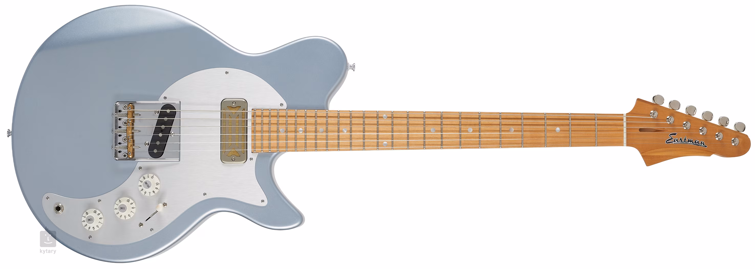 Le son du chevalet à simple bobinage superposé sans bruit de Tonerider et du manche à humbucker à bobine d'or personnalisé combine la chaleur vintage avec la réponse propre des micros modernes. Ajustez le caractère du son à l'aide des potentiomètres standard. La stabilité de l'accordage et le bon sustain sont garantis par la fixation des cordes dans le mécanisme six en ligne et par le chevalet en T avec des sillets en laiton compensés à travers le corps. La belle finition est accentuée par le pickguard en aluminium anodisé argenté et l'accastillage en nickel.