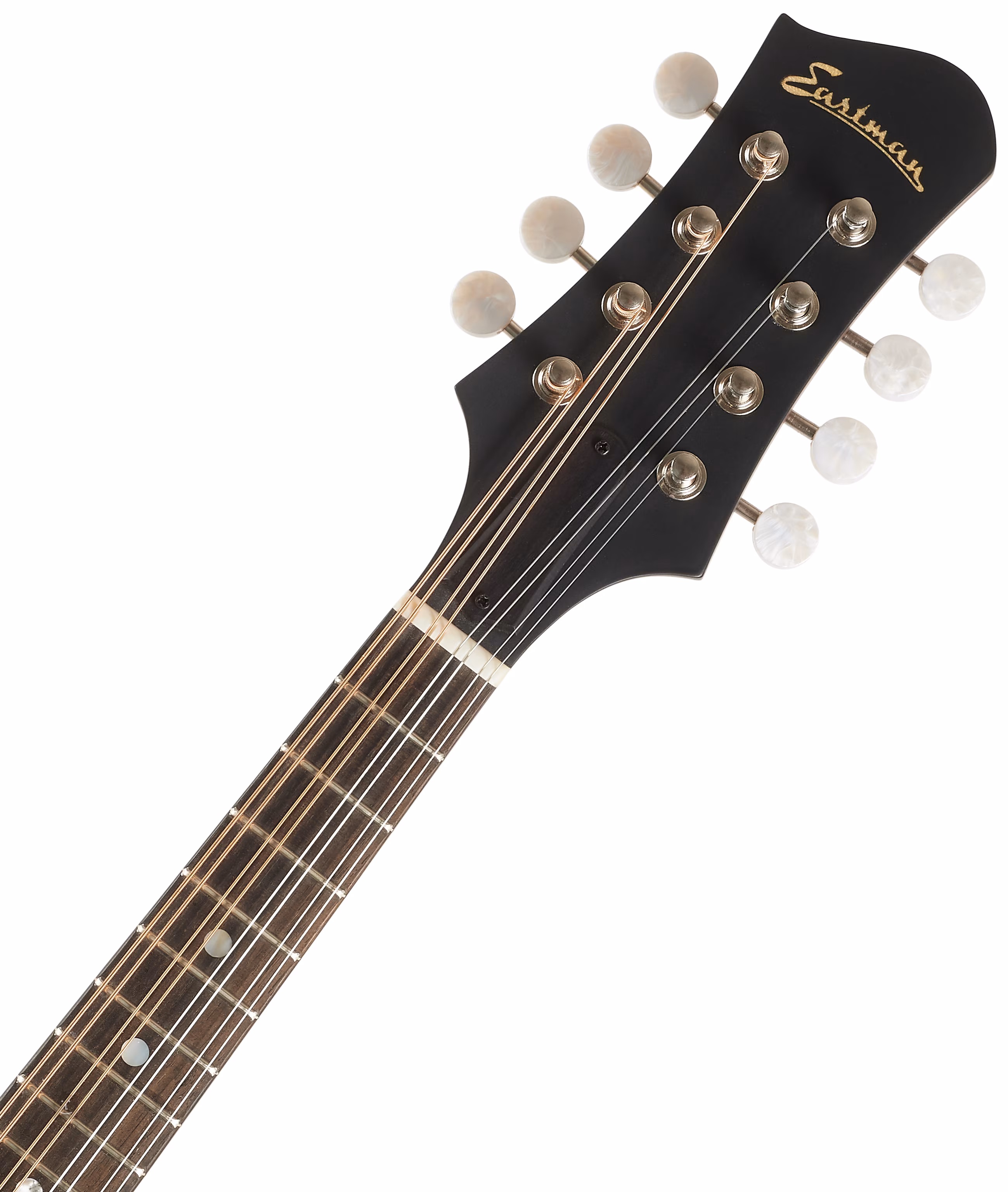 L'Eastman MD305 est une mandoline acoustique A de construction massive qui plaira certainement aux joueurs de mandoline expérimentés. La table d'harmonie de la mandoline est en épicéa, tandis que le dos et les éclisses sont en érable. Le corps est recouvert d'une laque satinée. Une touche en ébène de 23 frettes est collée sur le manche en érable.