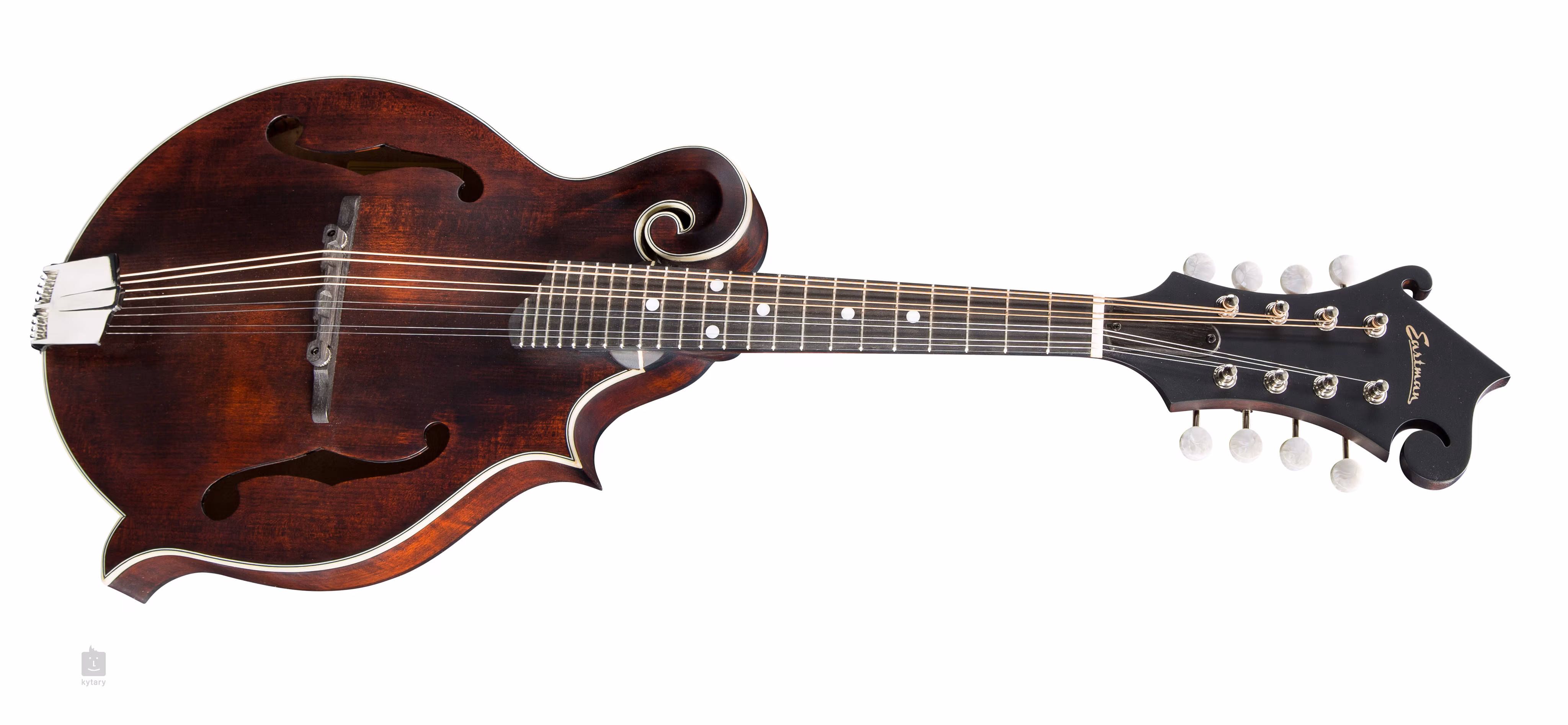 L'Eastman MD315 est une mandoline acoustique en fa de construction massive qui plaira certainement aux joueurs de mandoline expérimentés. La table d'harmonie de la mandoline est en épicéa, tandis que le dos et les éclisses sont en érable. Le corps est recouvert d'une laque satinée. Une touche en ébène de 23 frettes est collée sur le manche en érable.