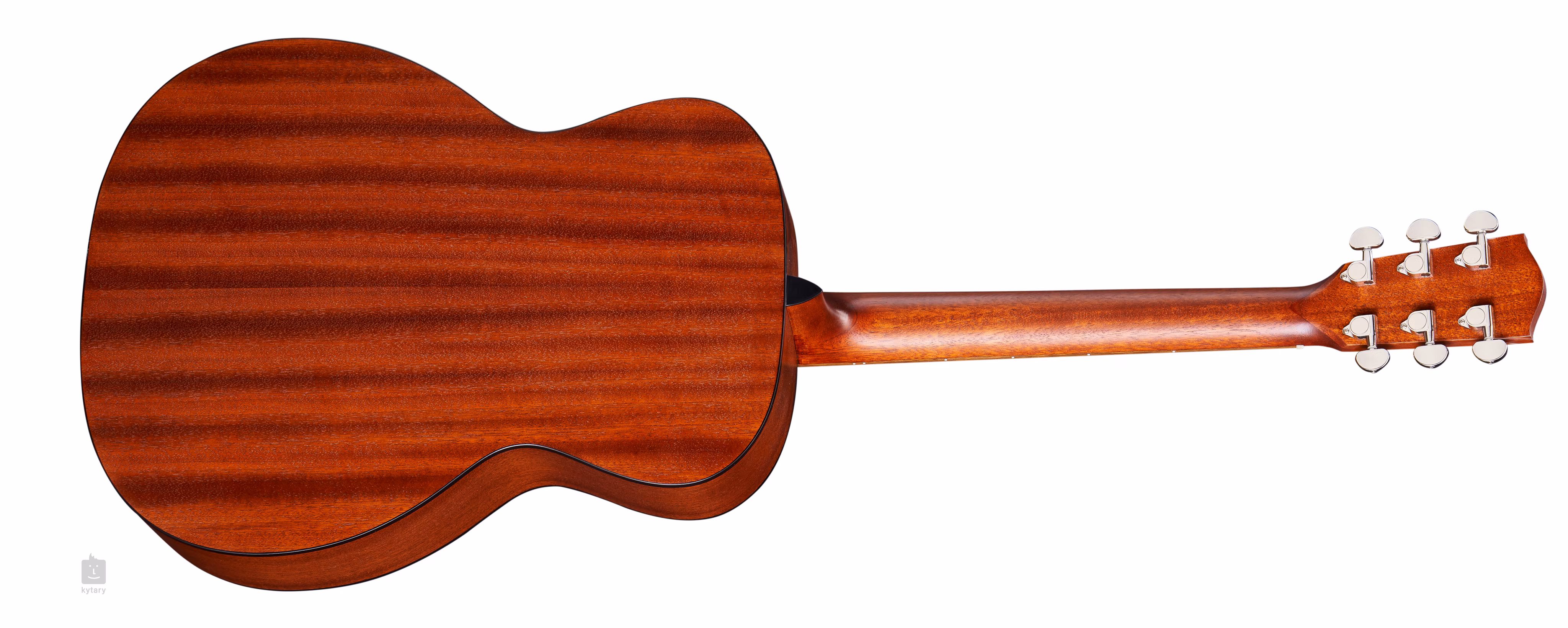 L'avant de la guitare est en épicéa de Sitka, tandis que le dos et les éclisses sont en sapelli stratifié. Une touche en palissandre avec 20 frettes est collée sur un manche en okoumé avec un beau profil en "C". La résonance de la table est soutenue par des nervures traditionnelles en X, et l'orientation sur la touche est facilitée par des points de positionnement en nacre.