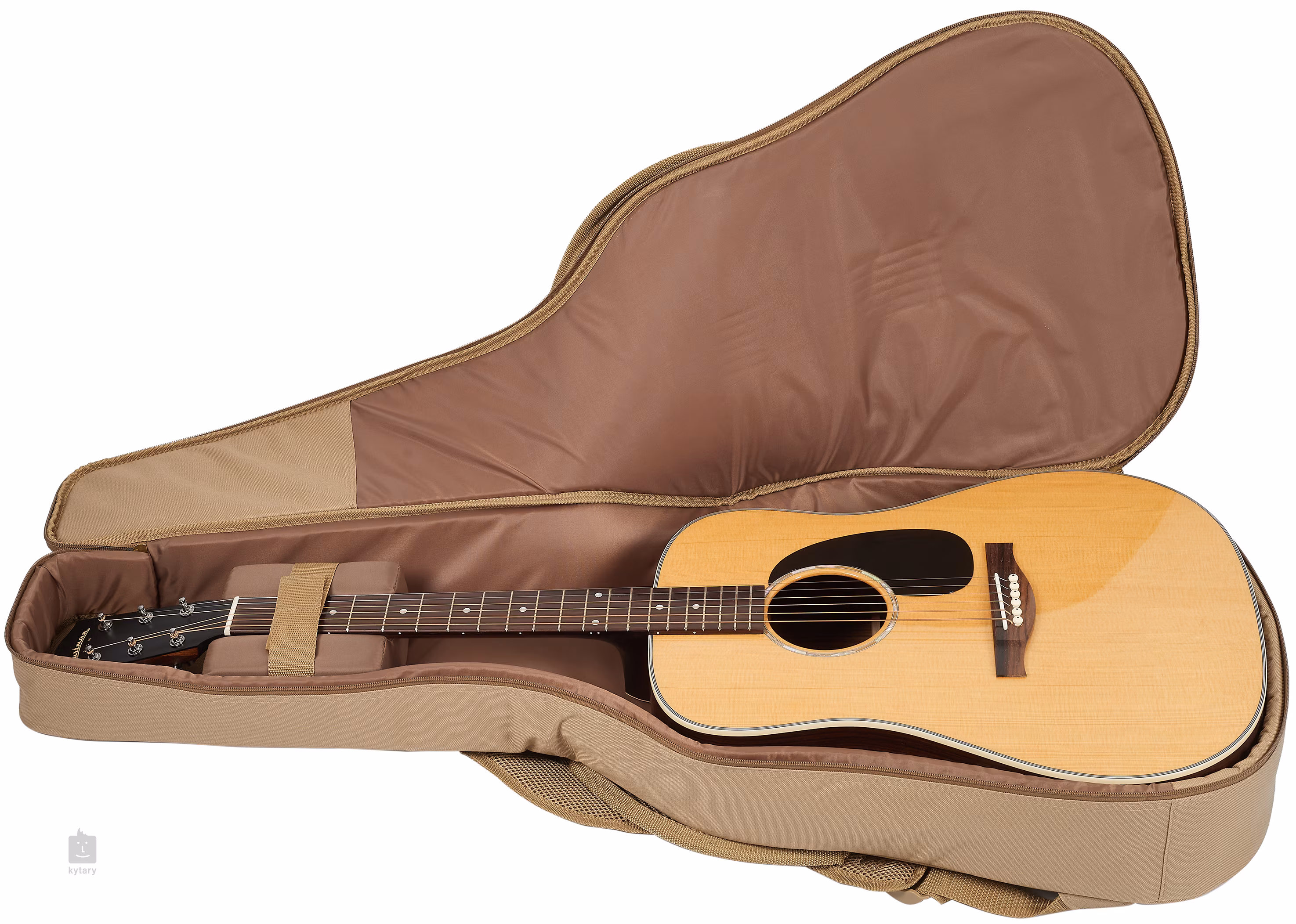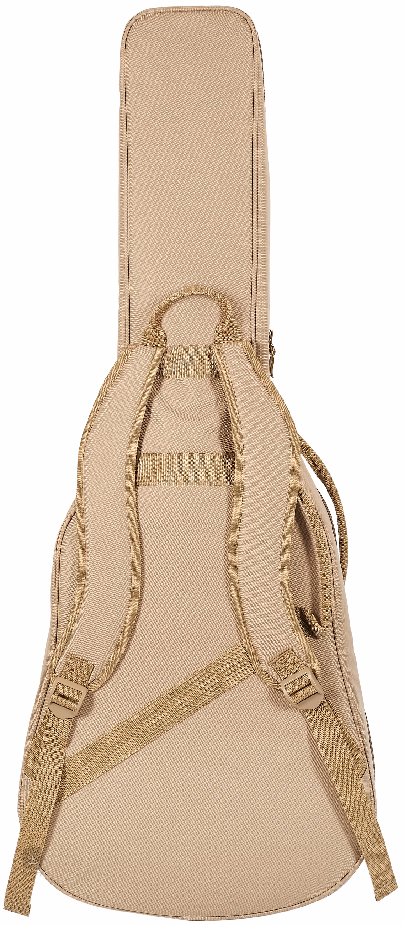 La table d'harmonie de la guitare est en épicéa de Sitka thermo-soudé, tandis que le dos et les éclisses sont en palissandre stratifié. Une touche en palissandre avec 20 frettes est collée sur un manche en okoumé avec un beau profil en "C". La résonance de la table est soutenue par des nervures traditionnelles en X, et l'orientation sur la touche est facilitée par des points de positionnement en nacre.