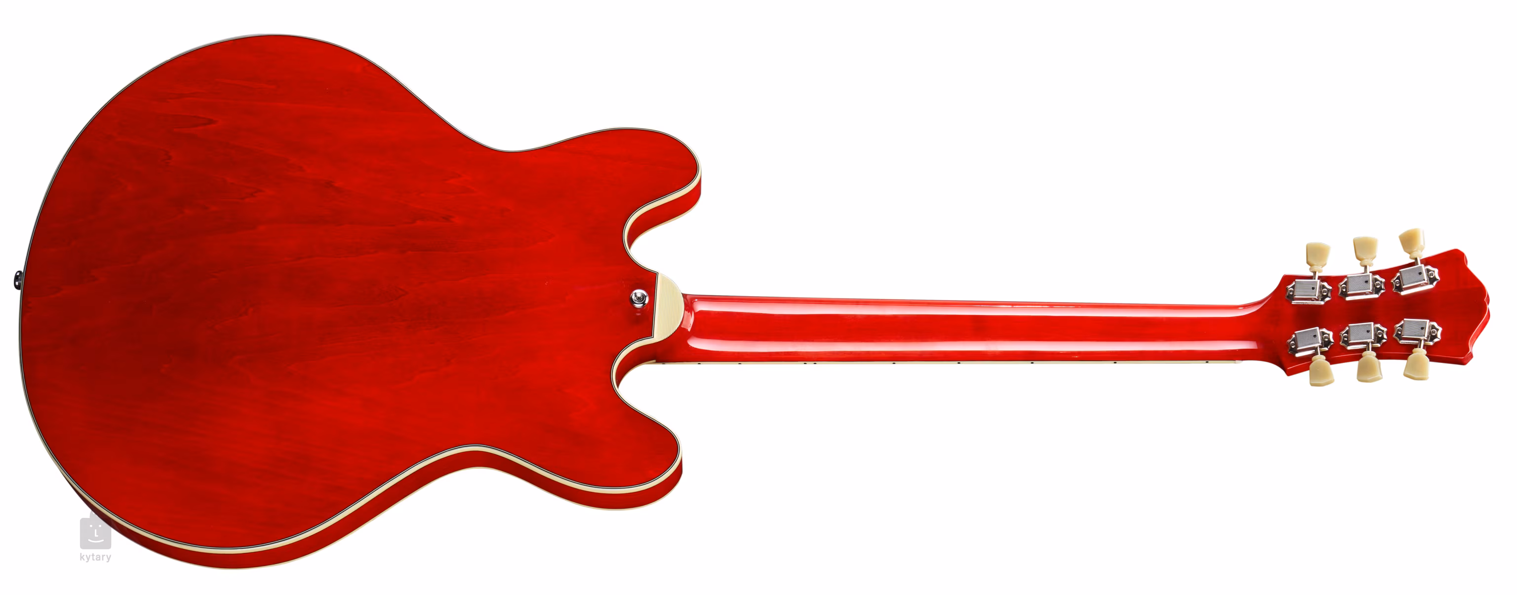 La Eastman T386-RD est une guitare électrique semi-hollowbody dans le style des populaires modèles ES-335 "thinline". Le corps de la guitare est en érable laminé. Un manche en érable avec un beau profil en "C" est collé à une touche en ébène avec vingt-deux frettes Medium Jumbo. L'orientation sur la touche est facilitée par des points de positionnement perlés.