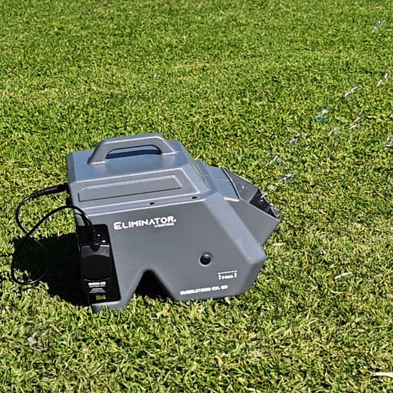 Le Bubbletron EXL GO d'Eliminator est un générateur de bulles compact alimenté par batterie qui vous offre une flexibilité et une indépendance sans précédent. Créez des bulles n'importe où, que vous soyez au milieu d'un champ, sur le toit d'un gratte-ciel ou même dans un chalet sans électricité.
