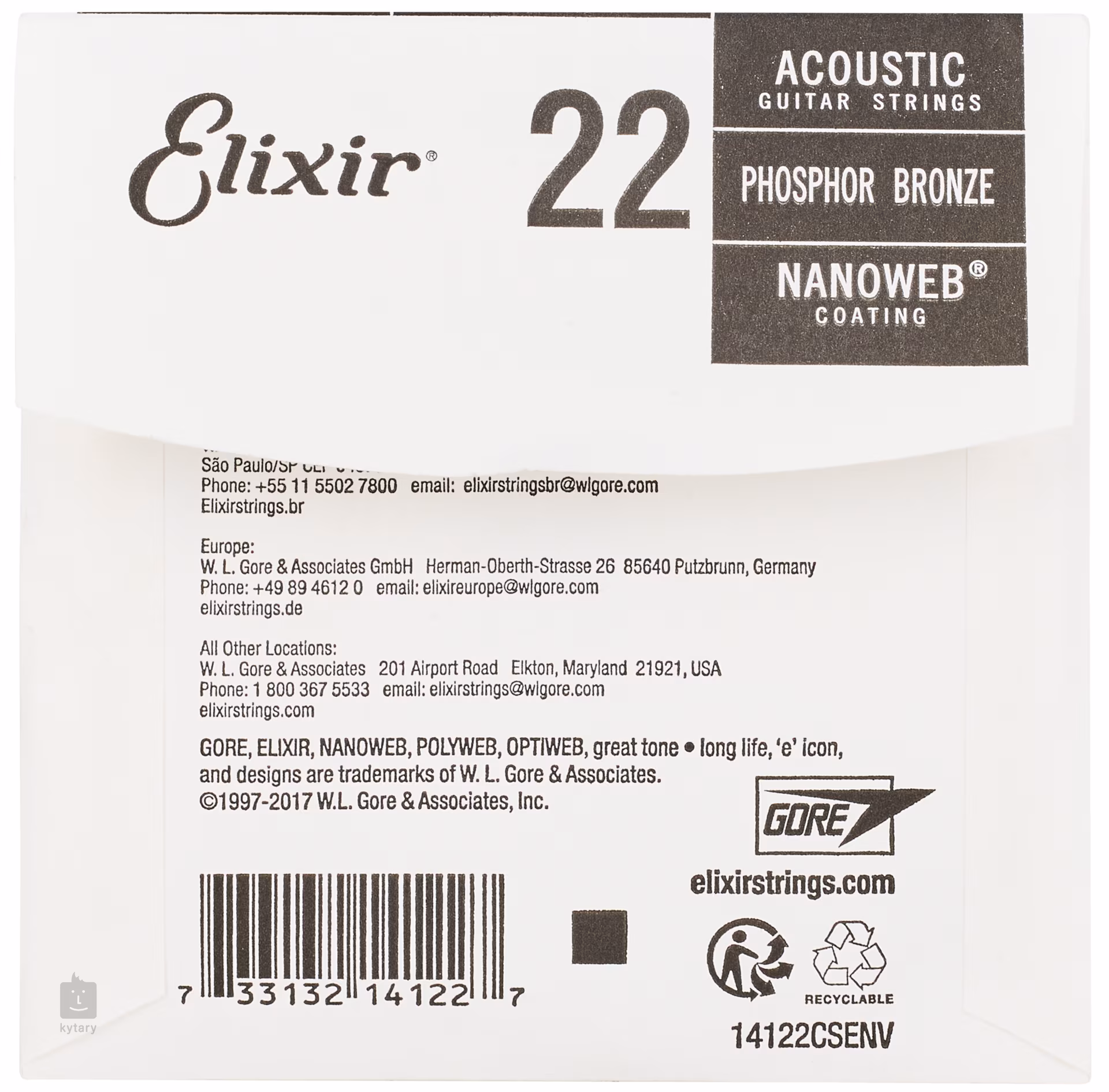Une corde de la légendaire société Elixir, réputée pour produire des cordes d'une durée de vie extrêmement longue. L'âme en acier est recouverte d'un alliage phosphore-bronze qui confère à la corde une sonorité chaude et équilibrée en fréquence. Le revêtement en nanofibres lui confère une grande durabilité et une durée de vie bien supérieure à celle d'une corde conventionnelle. Utilisez la dureté de 0,022" comme corde de sol pour le jeu de 11 cordes Phosphor Bronze Custom Light.