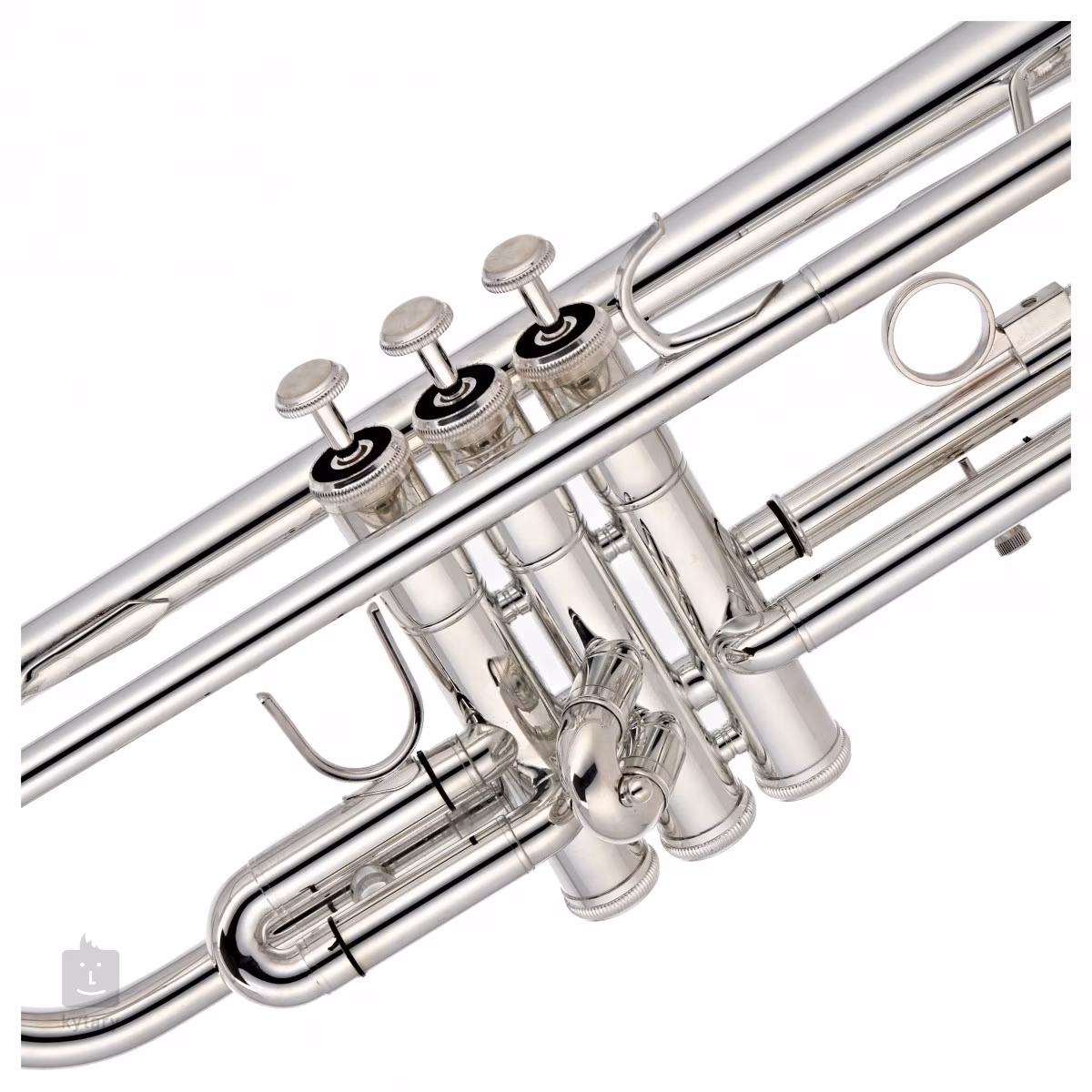 L'Elkhart 100TRS est une trompette en si abordable qui convient aux débutants et aux élèves des écoles de musique. La trompette est fabriquée en laiton jaune et comporte des mécanismes de piston en acier inoxydable, une embouchure en laiton rose, un anneau/stop sur le premier et le troisième accordeur pour que les étudiants puissent rapidement apprendre les bases de l'accordage de l'instrument, deux soupapes d'eau et une finition plaquée argent. L'instrument est livré avec un étui et des bandoulières, une embouchure et un chiffon.