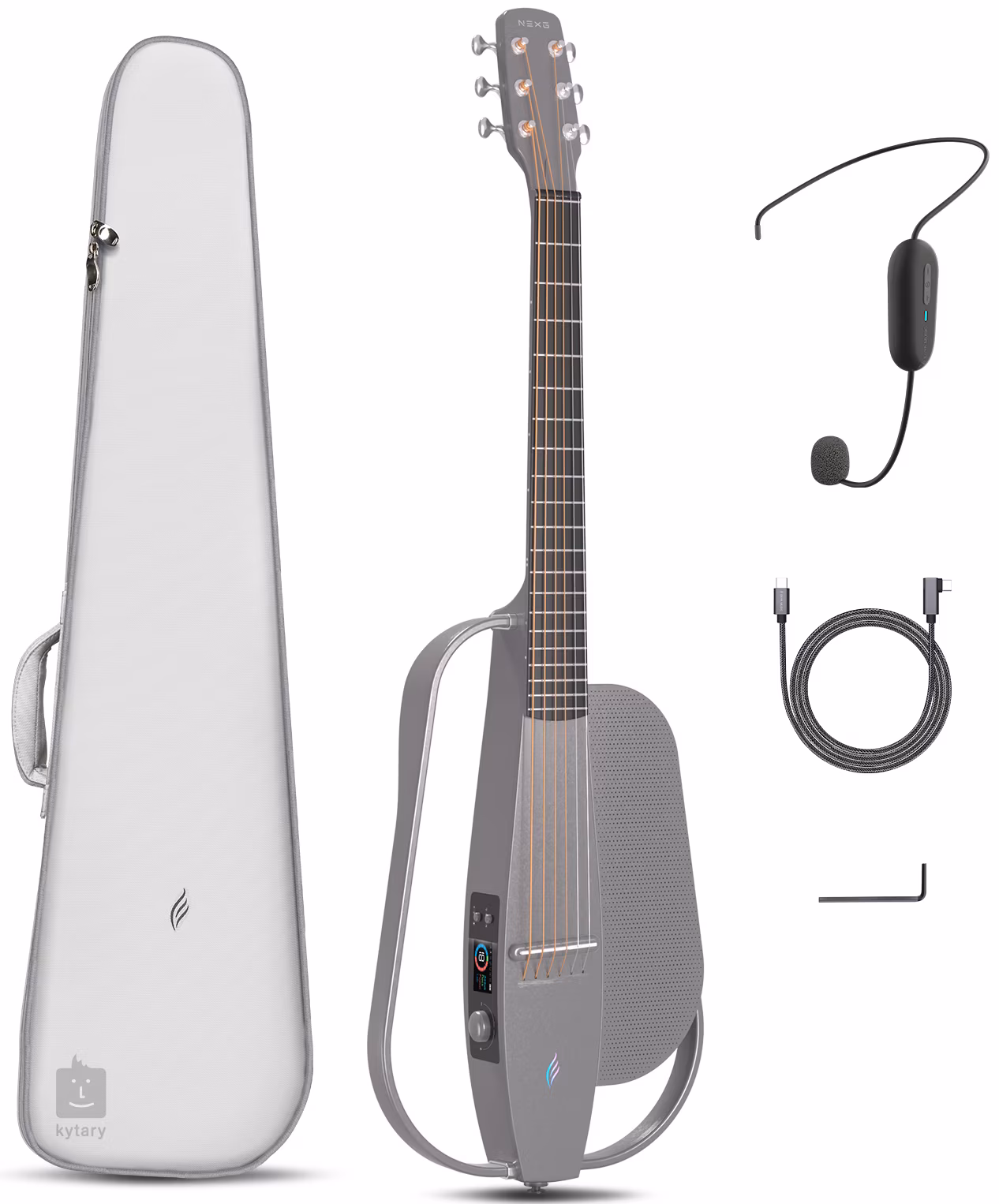 La guitare électro-acoustique Enya NEXG SE Grey, intelligente et multifonctionnelle, dans son design original, est une version plus abordable et plus légère de la NEXG 2, l'instrument phare de la marque. Elle est équipée d'un haut-parleur intégré d'une puissance maximale de 30 watts et d'une connectivité Bluetooth, d'un préampli numérique Enya ES3 Smart Audio avec quatre banques de sons, d'un accordeur intégré, d'une batterie rechargeable intégrée, d'une sortie ligne pour sonorisation et interface audio, d'une entrée micro, d'un connecteur USB pour la recharge et l'enregistrement en déplacement, et d'une sortie casque.