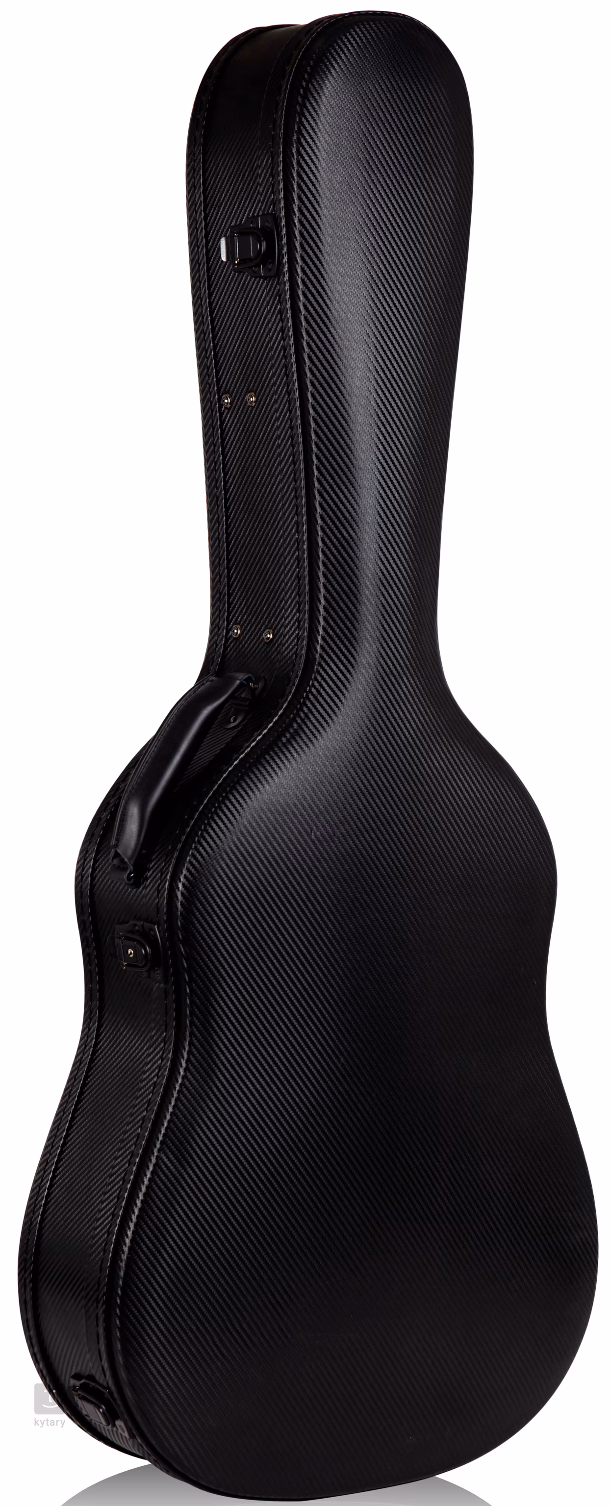 La guitare électro-acoustique Enya X4 Pro AcousticPlus Black se distingue de la plupart des produits de la marque par un design assez traditionnel dans le style des modèles GA avec un pan coupé en bas, mais comme prévu, elle trompe par son corps. En effet, celui-ci, comme d'autres parties de la guitare, est fabriqué en composite de carbone, un matériau totalement insensible aux changements de temps, de température ou d'humidité. Le manche est renforcé par des barrages en alliage d'aluminium. La découpe inférieure du corps et les frettes arrondies garantissent un confort de jeu optimal. Le trou de résonance, positionné de manière non conventionnelle et orné d'une bordure dorée, assure une bonne projection du son.