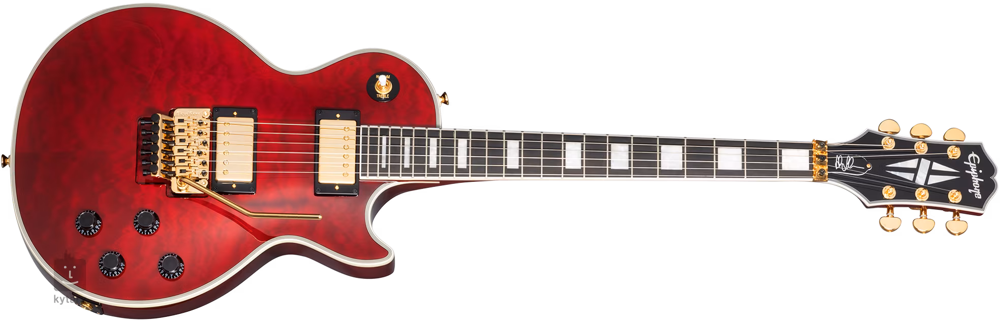 Alex Lifeson Les Paul Custom Axcess Ruby est le modèle signature d'Alex Lifeson, guitariste du groupe de prog rock canadien Rush.
