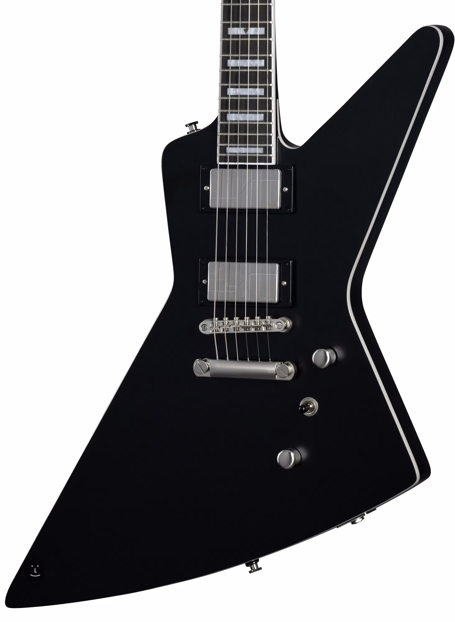 L'Epiphone Prophecy Extura est une Explorer légèrement modifiée avec une taille plus étroite et un pan coupé plus profond de la Gibson Futura. Le corps en acajou de l'Extura Prophecy Aged Jet Black Metallic est recouvert d'un placage en érable de qualité AAA. Le profil asymétrique Slim Taper du manche en acajou offre à la main gauche le confort nécessaire pour se déplacer facilement et rapidement sur la touche. La touche en ébène est équipée de 24 frettes de taille moyenne. L'orientation sur la touche est facilitée par des blocs de position comportant des morceaux de nacre véritable (Abalone).