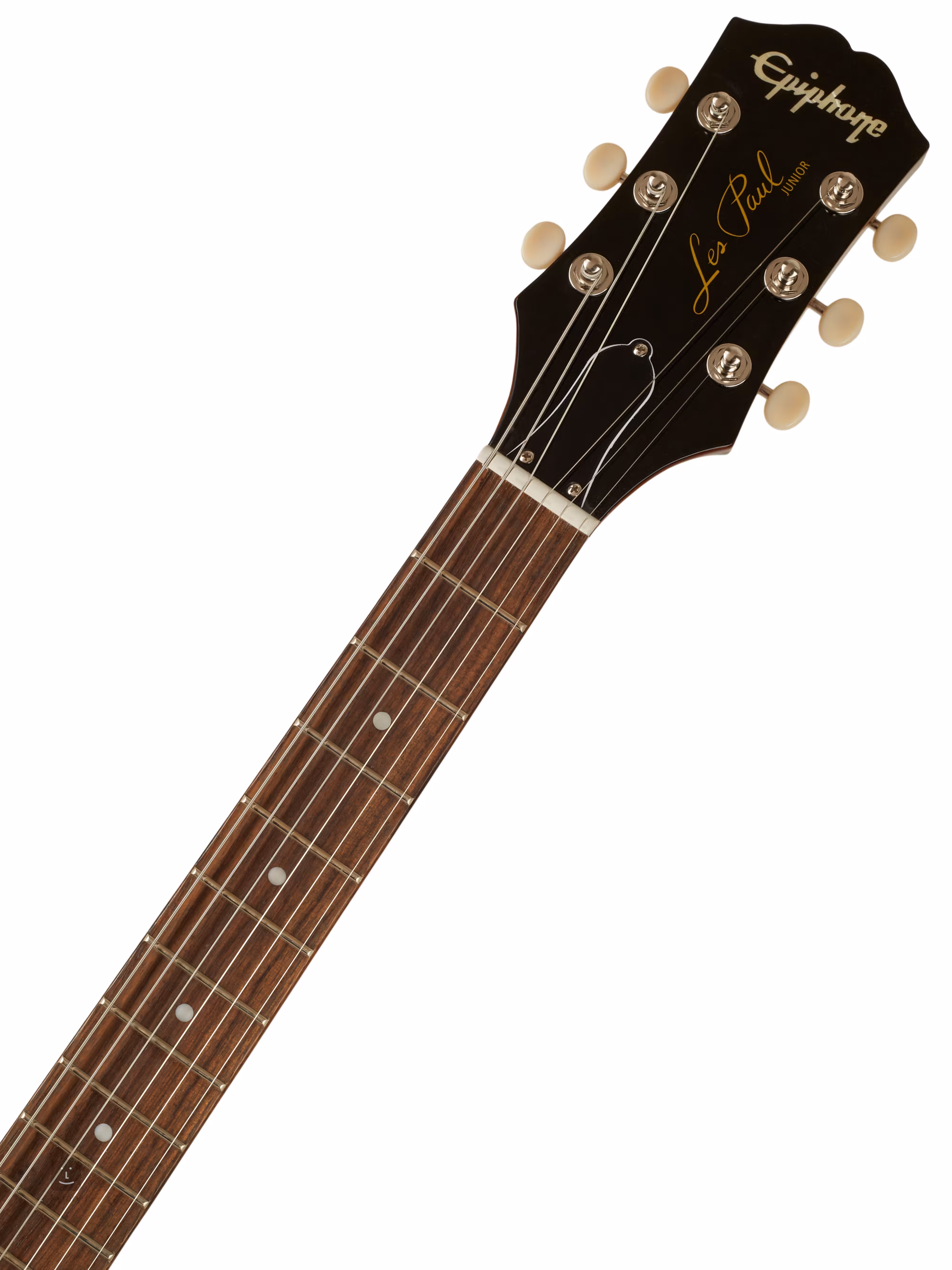 Depuis des décennies, les guitares électriques Les Paul d'Epiphone constituent une alternative plus abordable aux originaux Gibson. La série Les Paul Junior est basée sur les modeles abordables des années 1950, destinés a l'origine aux joueurs pour lesquels les Les Paul standard étaient trop cheres (étudiants, débutants, etc.).