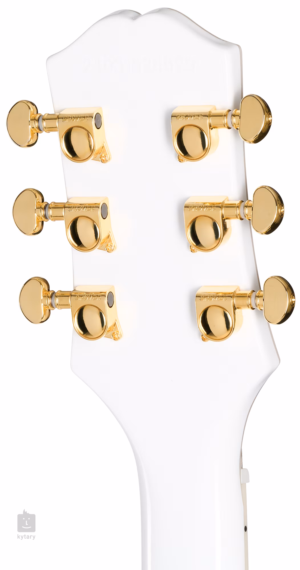 Les cordes sont montées sur des mécaniques Grover Mini Rotomatic de haute qualité et sur un cordier LockTone TOM réglable dans la corde. La belle finition est accentuée par l'accastillage doré, le pickguard noir à quatre plis, le logo en nacre et l'incrustation Custom Split Diamond (Mother-of-Pearl) sur la tête de la guitare.