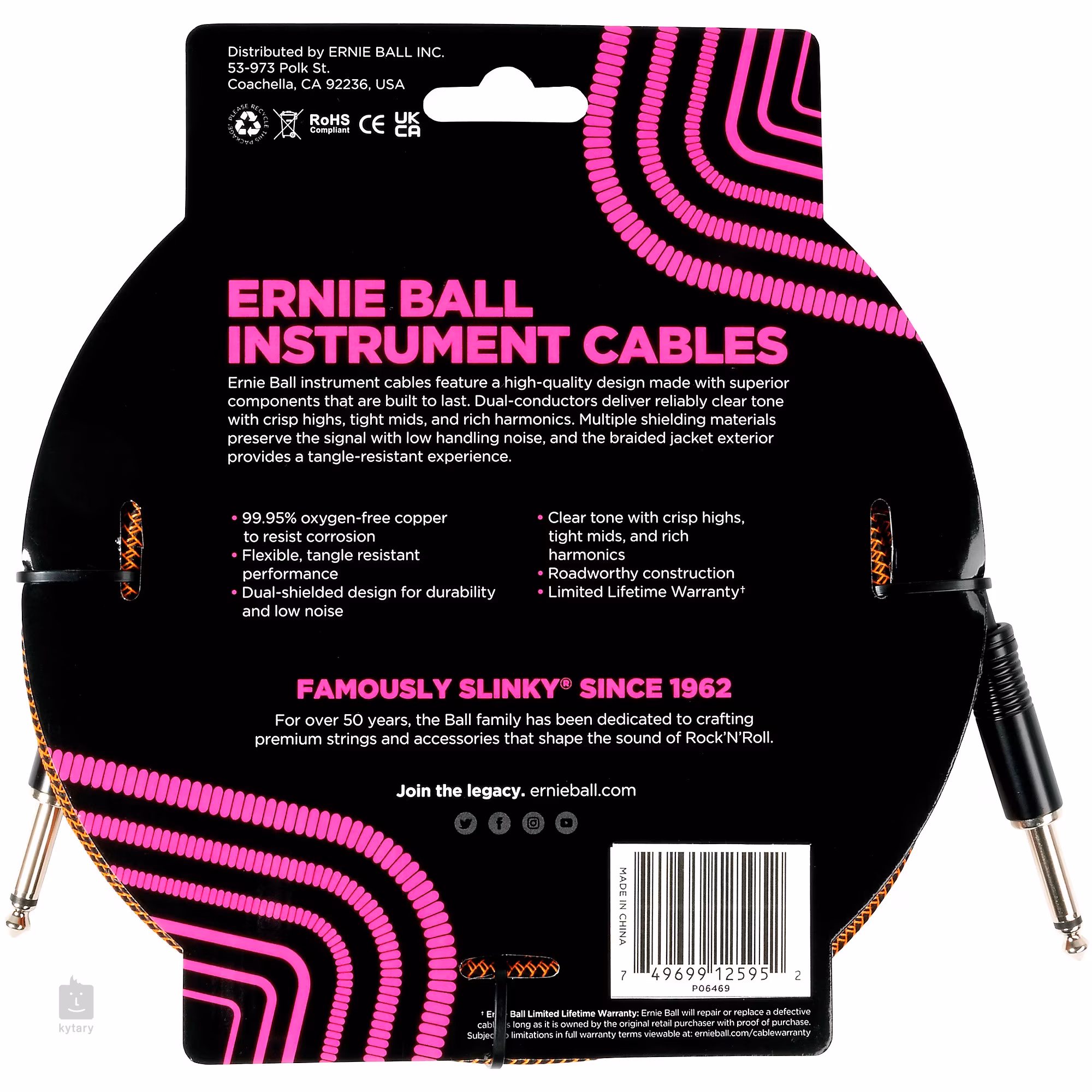 La marque Ernie Ball est un fabricant de cordes et d'accessoires de guitare de renommée mondiale, qui fabrique des produits de qualité supérieure pour les guitaristes et les bassistes depuis 1962. Elle compte parmi ses utilisateurs des musiciens légendaires tels que Paul McCartney, Keith Richards, Eric Clapton, Slash, Jimmy Page et Buddy Guy. La marque utilise une technologie de pointe et des matériaux de la plus haute qualité pour améliorer continuellement l'expérience de jeu et offrir un large éventail de possibilités d'expression.