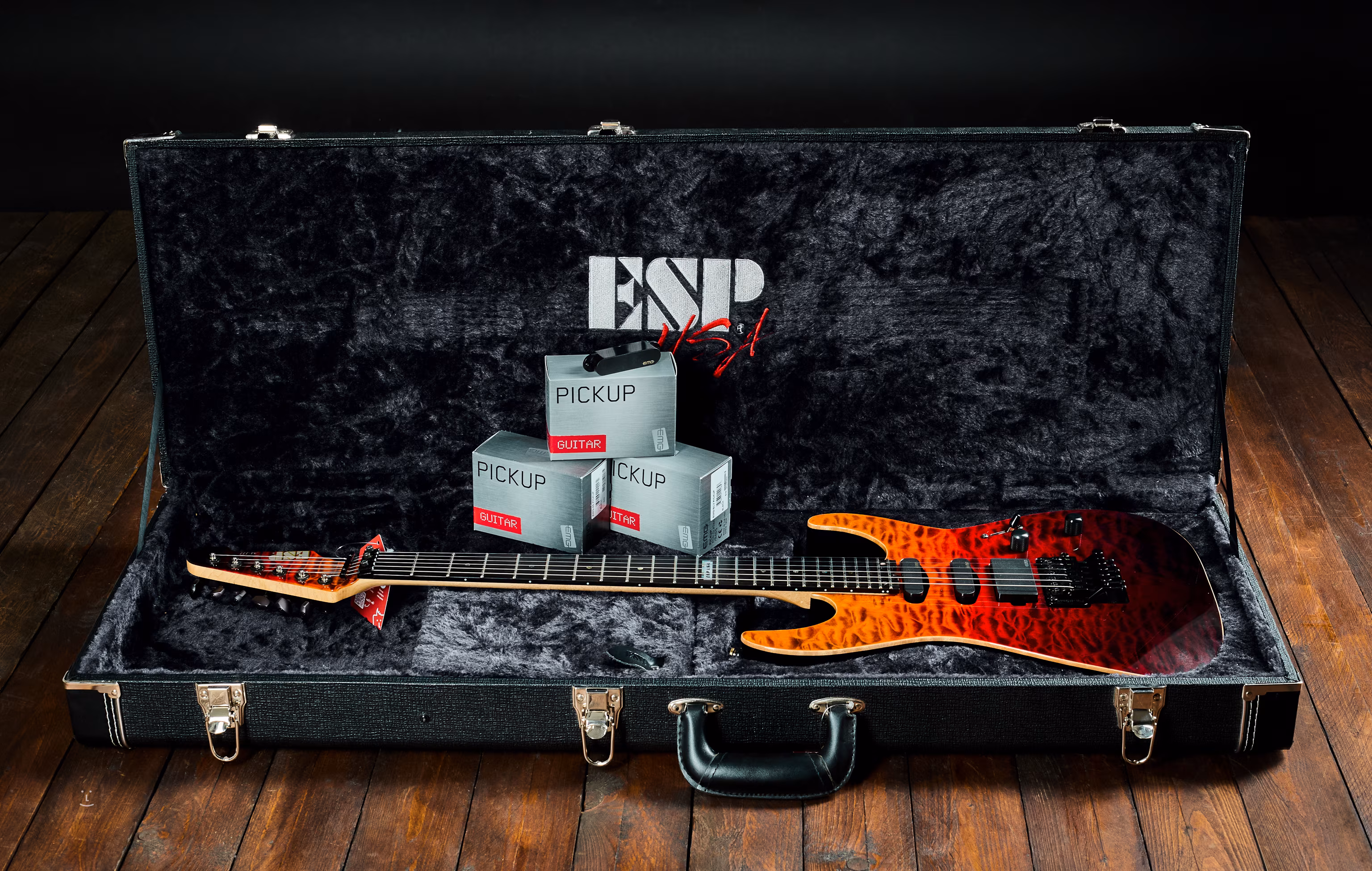 ESP américaine, un superbe modèle M-III en Tiger Eye Fade, non proposé actuellement par la marque. Une machine de rock haut de gamme de 2020, au design original et en excellent état. A l'exception d'un petit défaut, et avec un jeu de micros EMG supplémentaire.