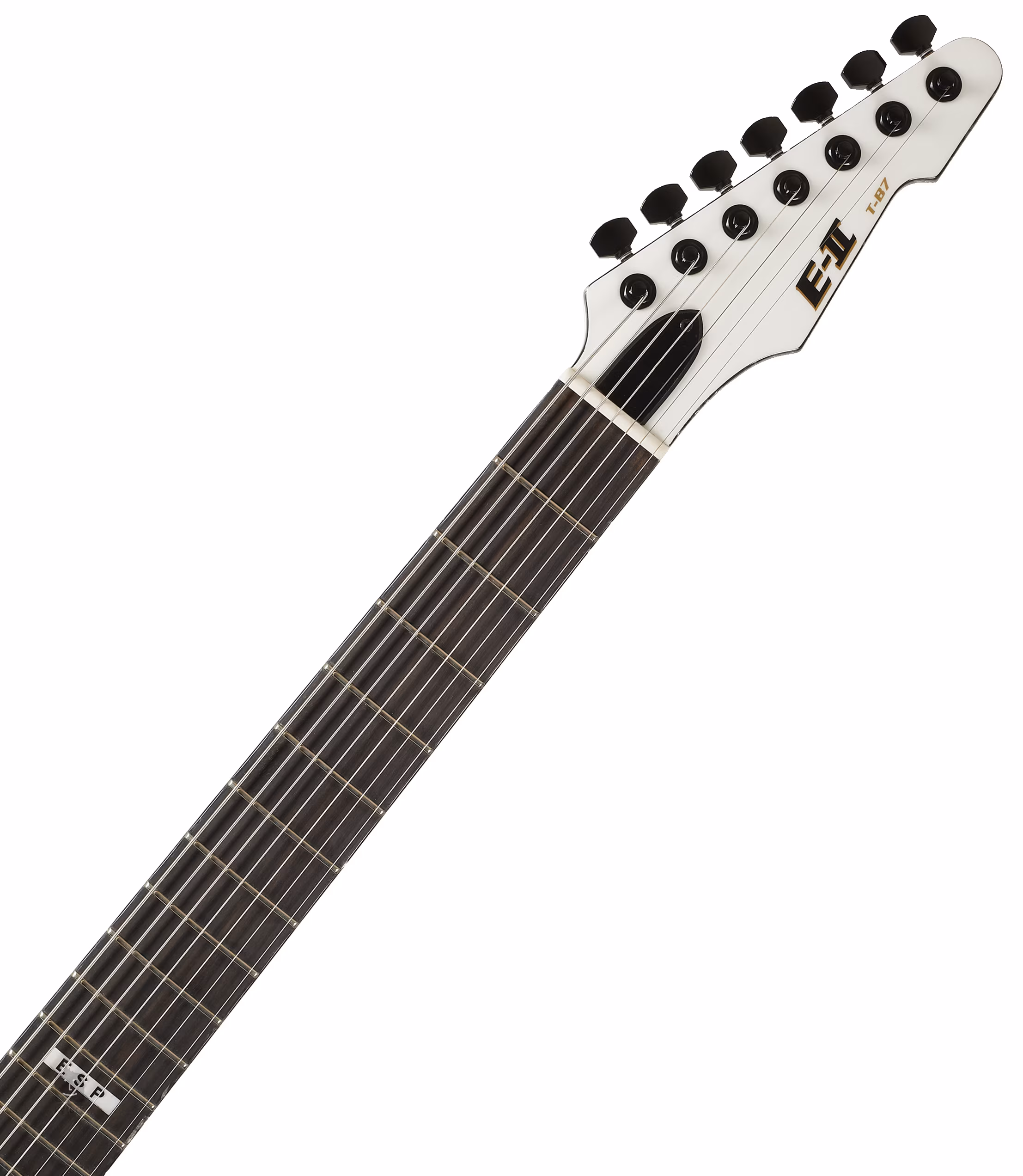 Cette guitare électrique baryton a sept cordes est un instrument qui plaira a tous les amateurs d'un son épais. Grâce a son alésage de 686 mm, il peut supporter des réglages extremes. Le corps de la guitare est en aulne. Le manche en érable en trois parties avec un profil en U fin est équipé d'une touche en ébene avec vingt-quatre frettes Extra Jumbo.
