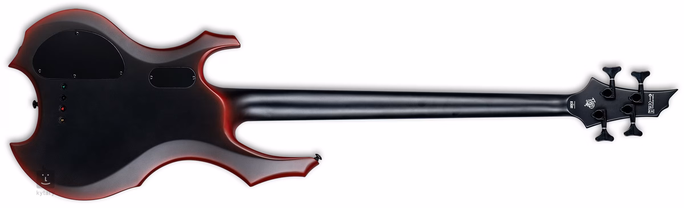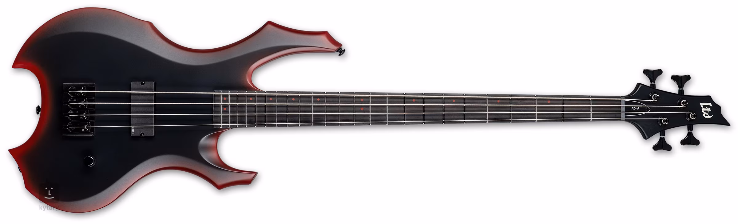 La LTD FL-4 est une guitare basse signature de Fred Leclercq, connu notamment des groupes DragonForce et Kreator. Ce modèle est basé sur le design de la série ESP Forest/F, mais ajoute une découpe diabolique à l'arrière du corps et une transition de couleur distinctive Satin Black à Red Burst qui lui donne un look sombre et agressif. Avec sa construction neck-thru-body et sa perce de 34", elle offre un sustain maximal et un accès confortable à toutes les positions.