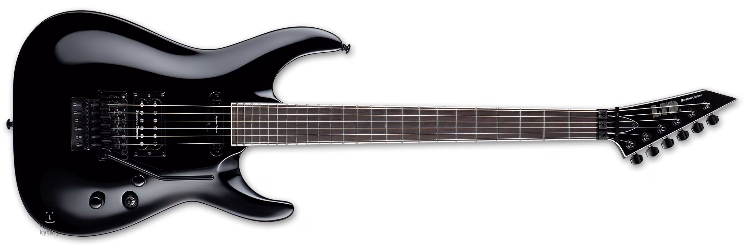 Le modèle HORIZON CTM '87 BLACK présente le corps en aulne arqué des guitares électriques ESP Horizon de la fin des années 80 et du début des années 90, ainsi qu'un manche étroit en érable moulé. Vingt-quatre frettes Extra Jumbo divisent la surface de la touche en macassar ébène.