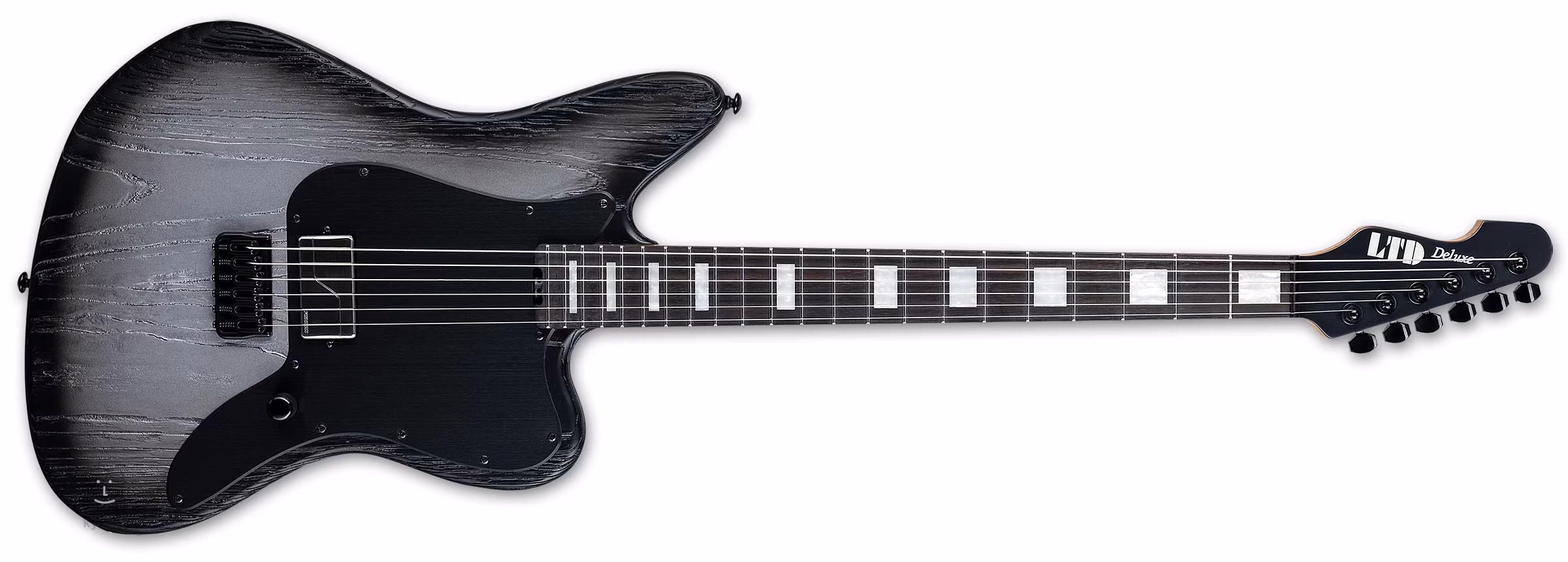 La guitare électrique XJ-1 Baritone Silver Blast, avec sa forme élégante et décalée, fait partie de la série LTD Deluxe, qui représente le meilleur de la production LTD. Le son, le design, la qualité de fabrication et la jouabilité des instruments de cette série soutiennent parfaitement la comparaison avec des guitares "haut de gamme" plus chères. Il s'agit d'une guitare baryton avec un diapason plus long (686 mm), normalement accordée en H/B, c'est-à-dire similaire aux guitares à sept cordes.