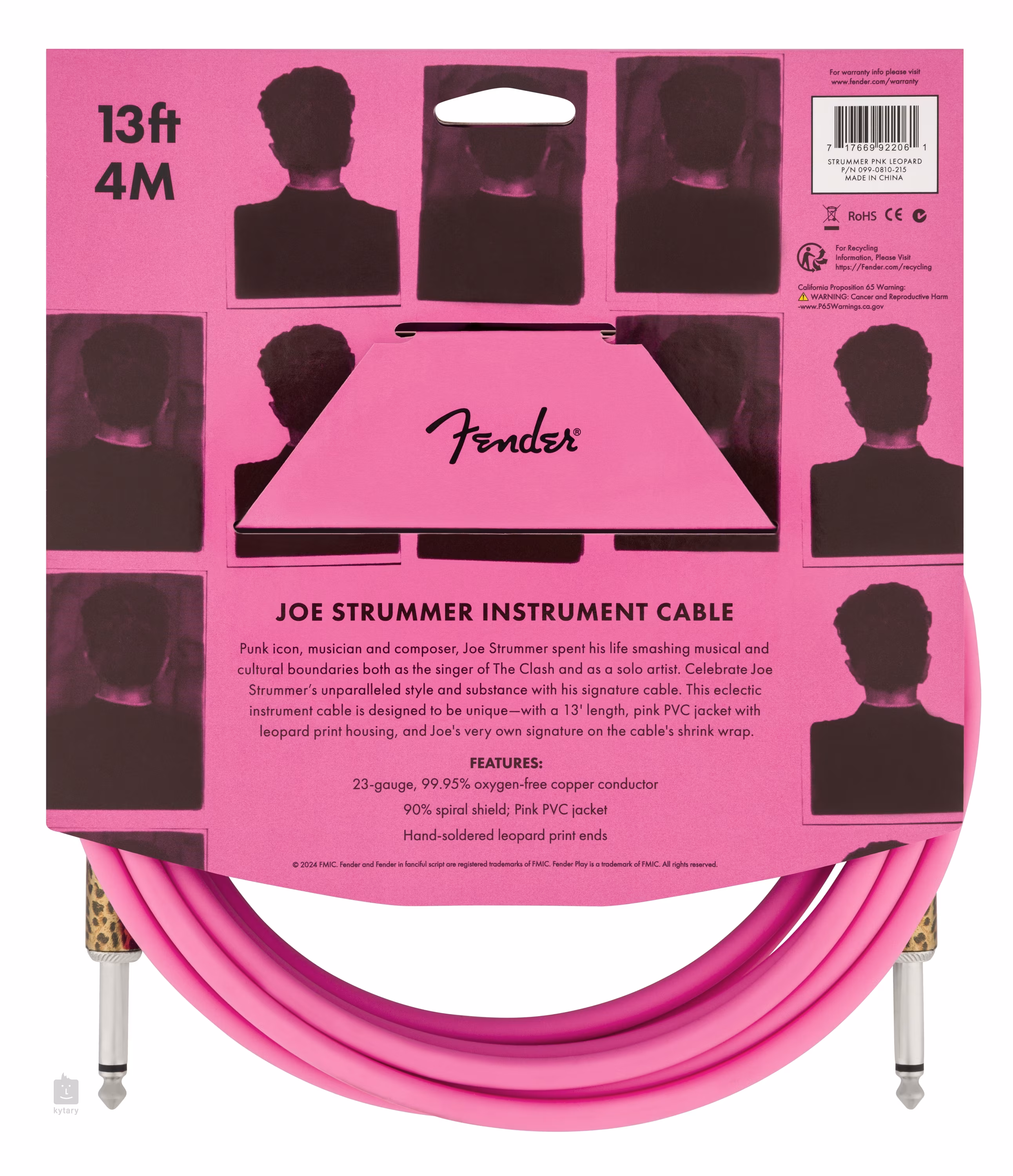 Le câble INST CBL STRUMMER PNK LEOPARD de Fender célèbre le style unique et les contributions de l'icône punk Joe Strummer, qui a passé sa vie à briser les frontières musicales et culturelles en tant que chanteur du groupe The Clash et en tant qu'artiste solo. Ce câble exclusif a une longueur de 4 mètres, une gaine en PVC rose avec un imprimé léopard et la signature de Joe sur le film rétractable du câble, ce qui en fait une pièce vraiment unique.