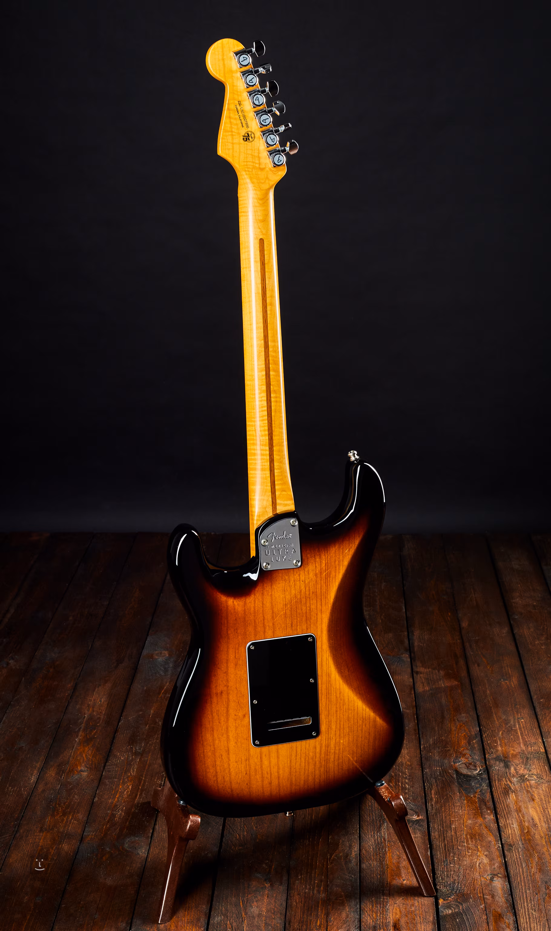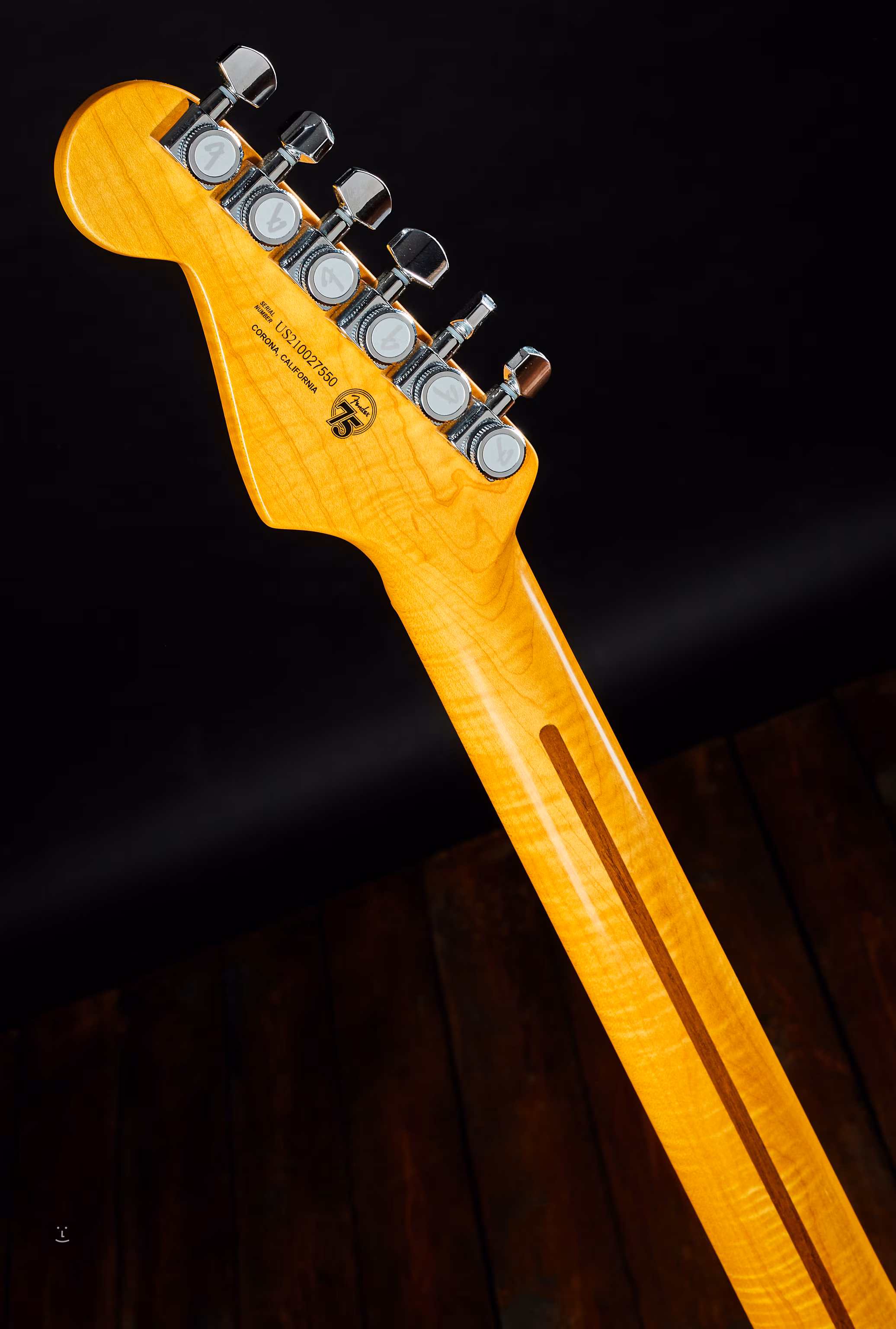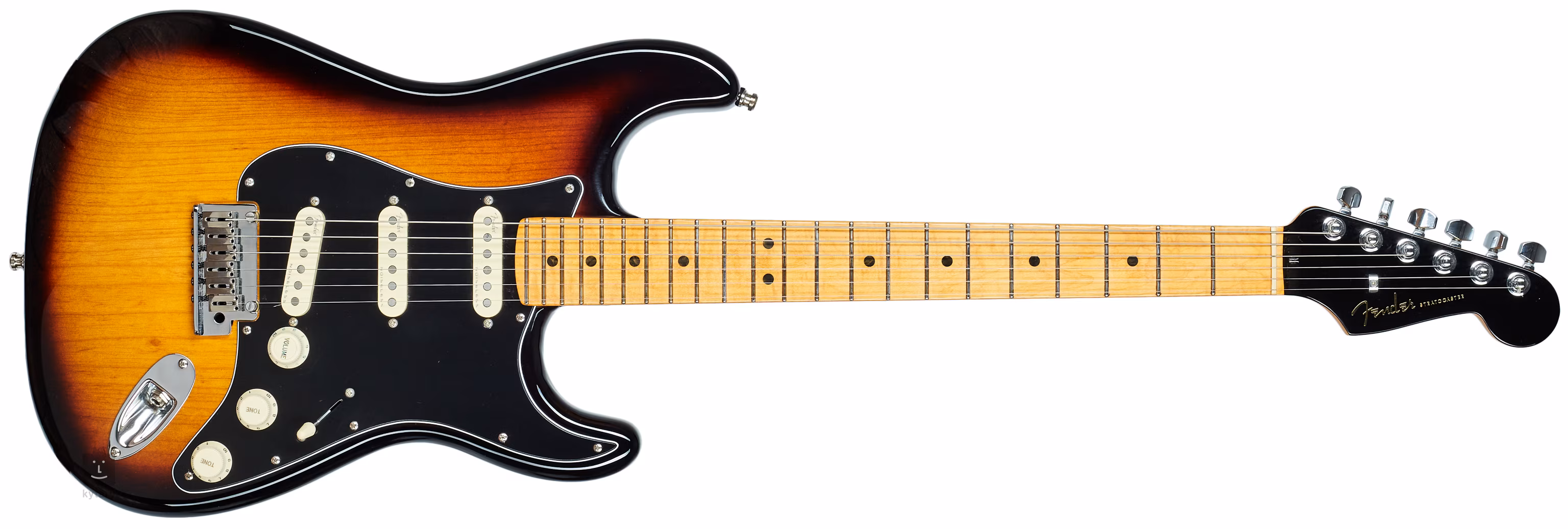 Modèle anniversaire de la strat américaine avec des caractéristiques modernes, un corps en frêne et une jolie tête de manche en noir.
