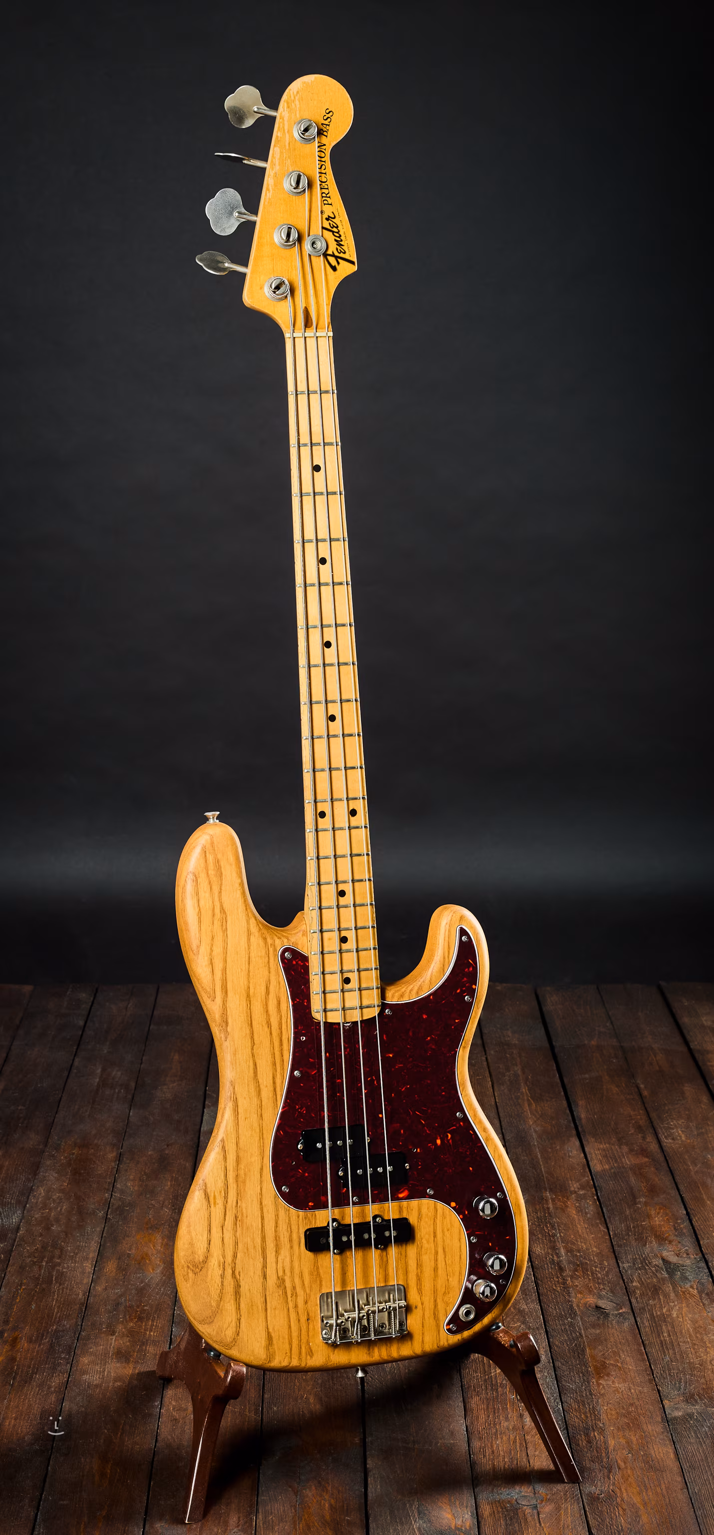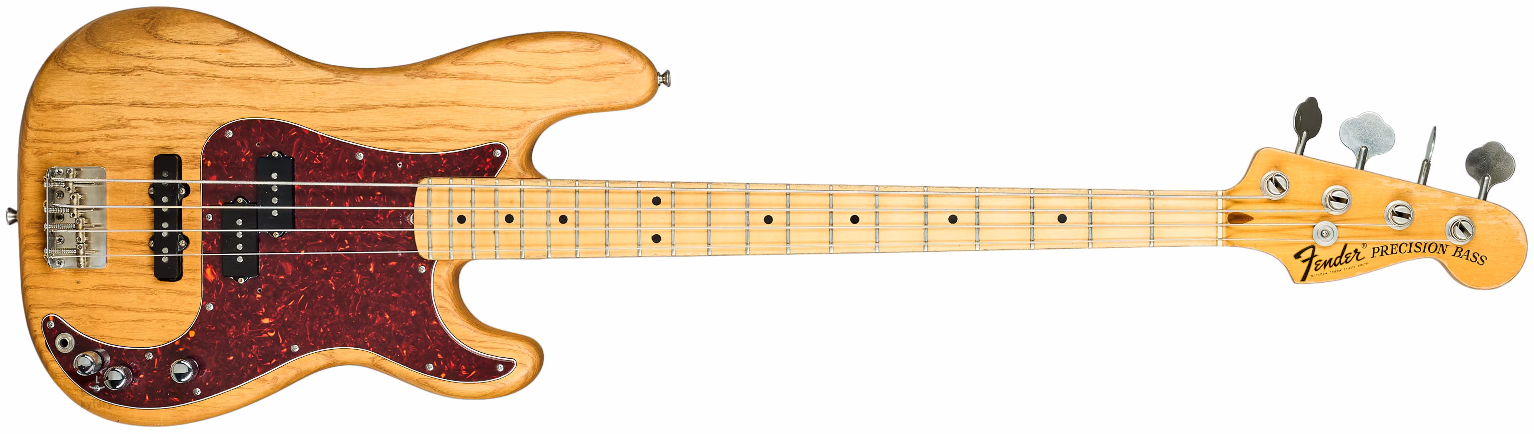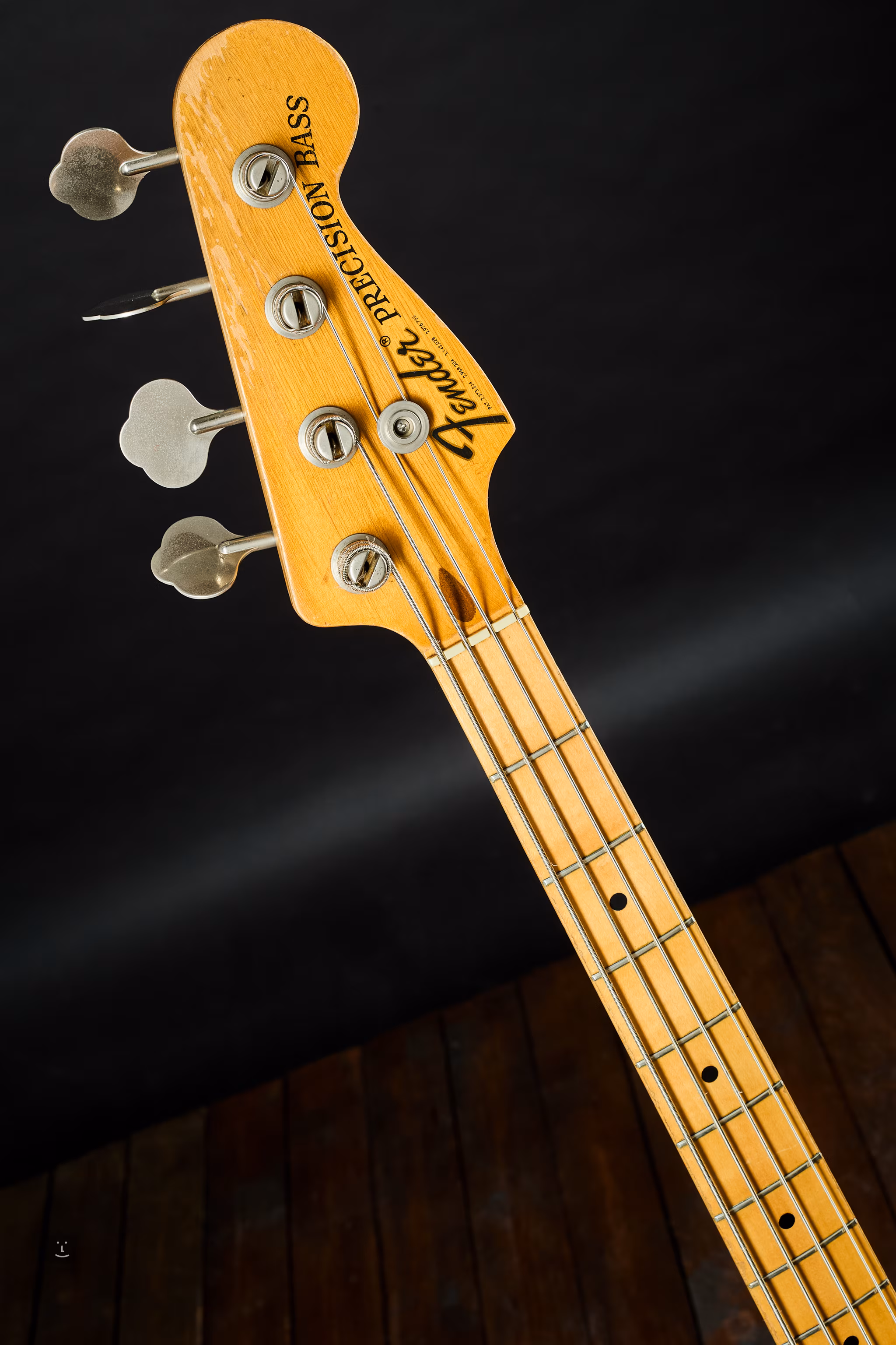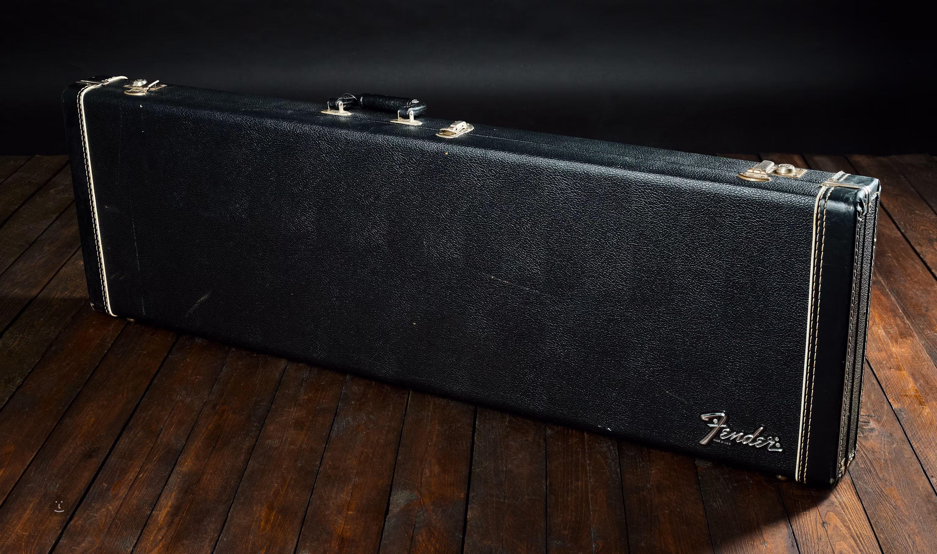 Le corps de l'instrument a été débarrassé de son vernis par le passé ; un micro de basse jazz a été ajouté à l'endroit habituel de la touche (il s'agit d'un micro Fender JB original de la même année, 1975) ; le split-coil a été remplacé par un micro Fender Custom Shop 62 ; et le micro PB original est inclus dans son étui d'origine ; Cependant, sous le pickguard en écaille de tortue non original, un trou supplémentaire a été fraisé pour le micro JB en position manche, ainsi qu'un puits supplémentaire pour une pile 9V ou un interrupteur de micro (les deux trous sont maintenant couverts et inutilisés) ; un potentiomètre de volume a été ajouté sur le pickguard pour le micro, à moins d'un pouce de l'écran de tonalité. La touche de l'instrument est d'origine, avec les trous de vis d'une autre touche précédemment installée en dessous.
