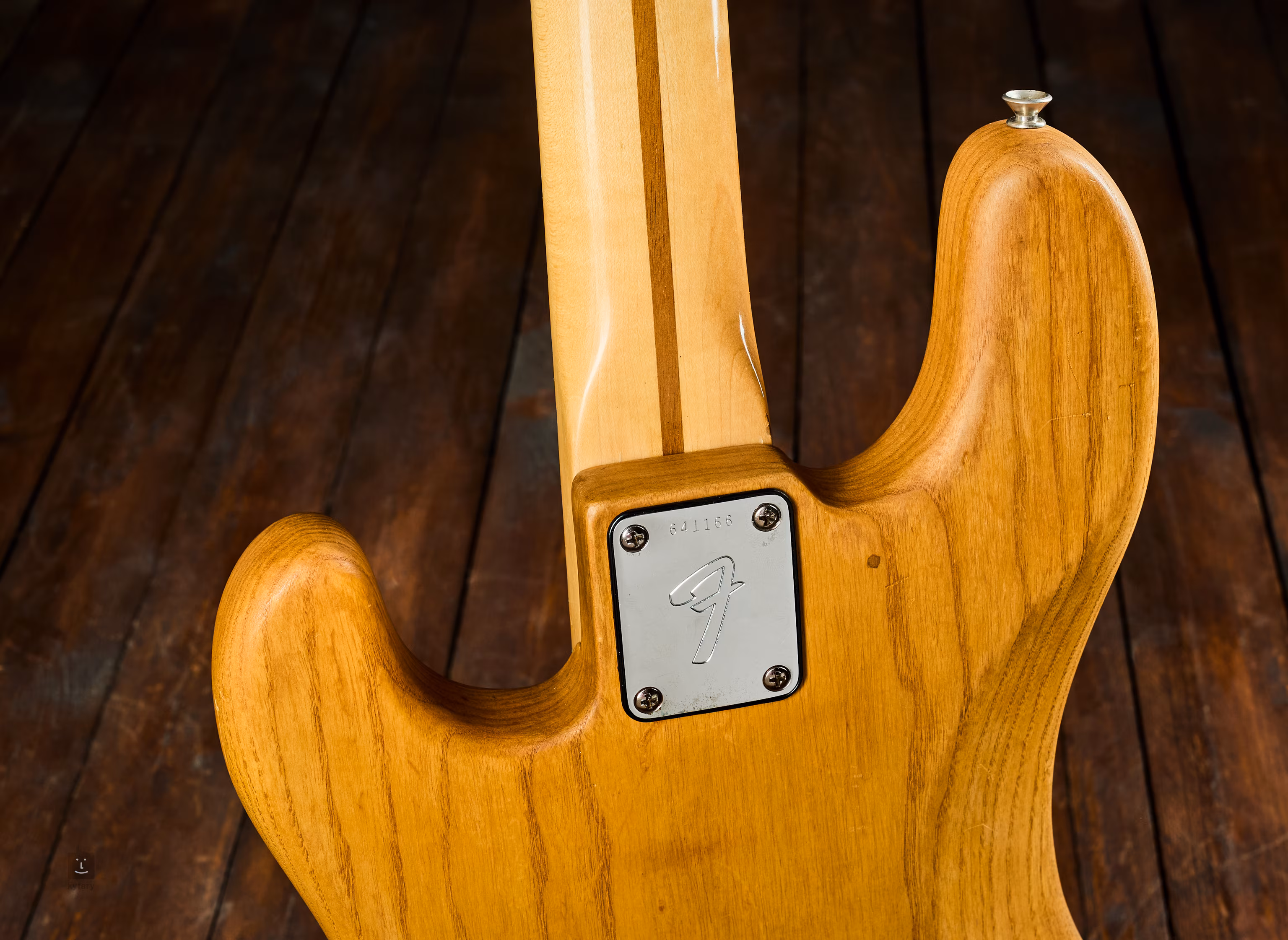 Le manche, contrairement au corps, est en état d'origine, avec les frettes et les mécaniques d'origine. Cet instrument intéressant est dans l'ensemble en très bon état. Il peut être traité de plusieurs façons : l'utiliser tel quel ; boucher les trous dans le corps en frêne et donner au corps une finition intéressante ; ajouter un micro à la position JB du manche et profiter de la configuration comme sur une basse signée Stu Hamm Urge Bass ; utiliser les pièces d'origine (micros, étui, mécaniques) ailleurs... Cela peut certainement rester un projet intéressant, ou vous pouvez simplement obtenir une basse vintage (qui n'a pas perdu beaucoup de son caractère authentique) pour un bon prix grâce à des modifications qui réduisent sa valeur de collection.