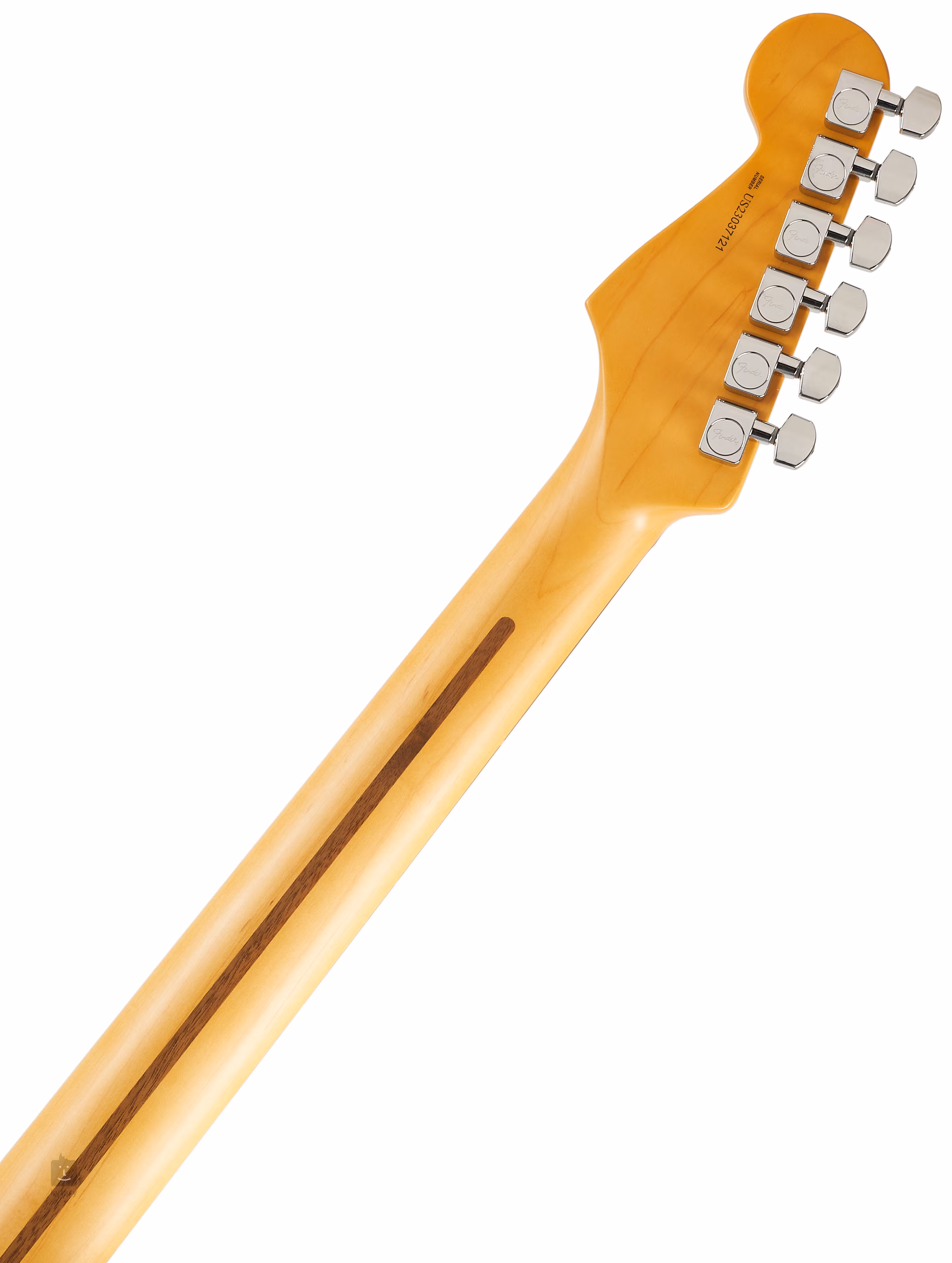 Les cordes sont ancrées dans les mécaniques d'accordage de la société (Standard Cast/Sealed Staggered) et le trémolo synchronisé avec selles en acier et fixation a deux points.