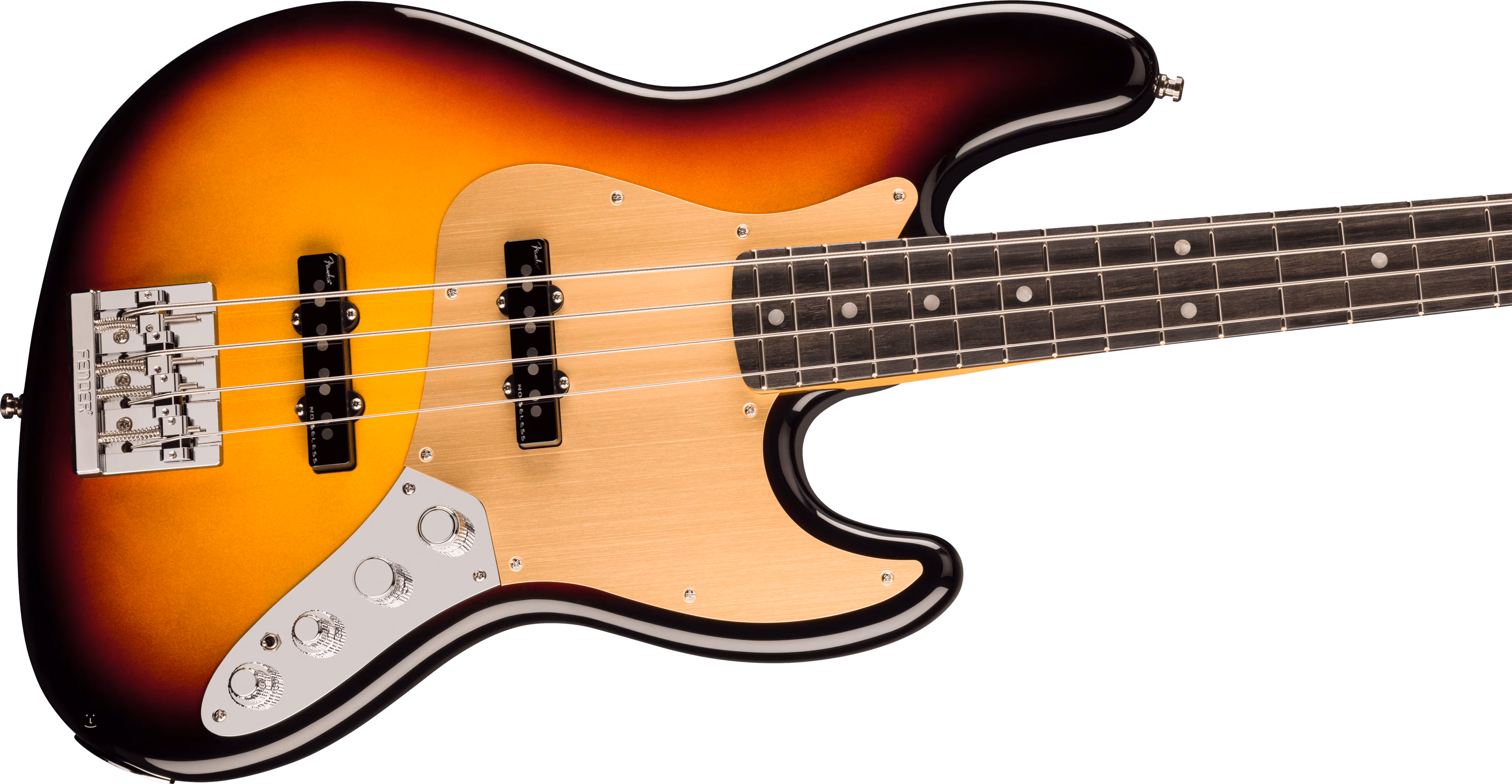 La basse est équipée de micros Ultra II Noiseless Vintage Jazz Bass spécialement conçus pour offrir une large palette de sonorités allant d'un son vintage chaleureux à un son moderne et net sans distorsion. Le préampli offre une commutation S-1 pour un fonctionnement actif/passif, un contrôle de tonalité passif et un égaliseur actif à 3 bandes avec des médiums commutables. Les autres caractéristiques comprennent un chevalet HiMass réglable avec accordage à travers le corps ou sur la corde supérieure, des mécaniques d'accordage légères avec des arbres coniques, des boutons en aluminium et un pickguard en aluminium anodisé 1 pli.