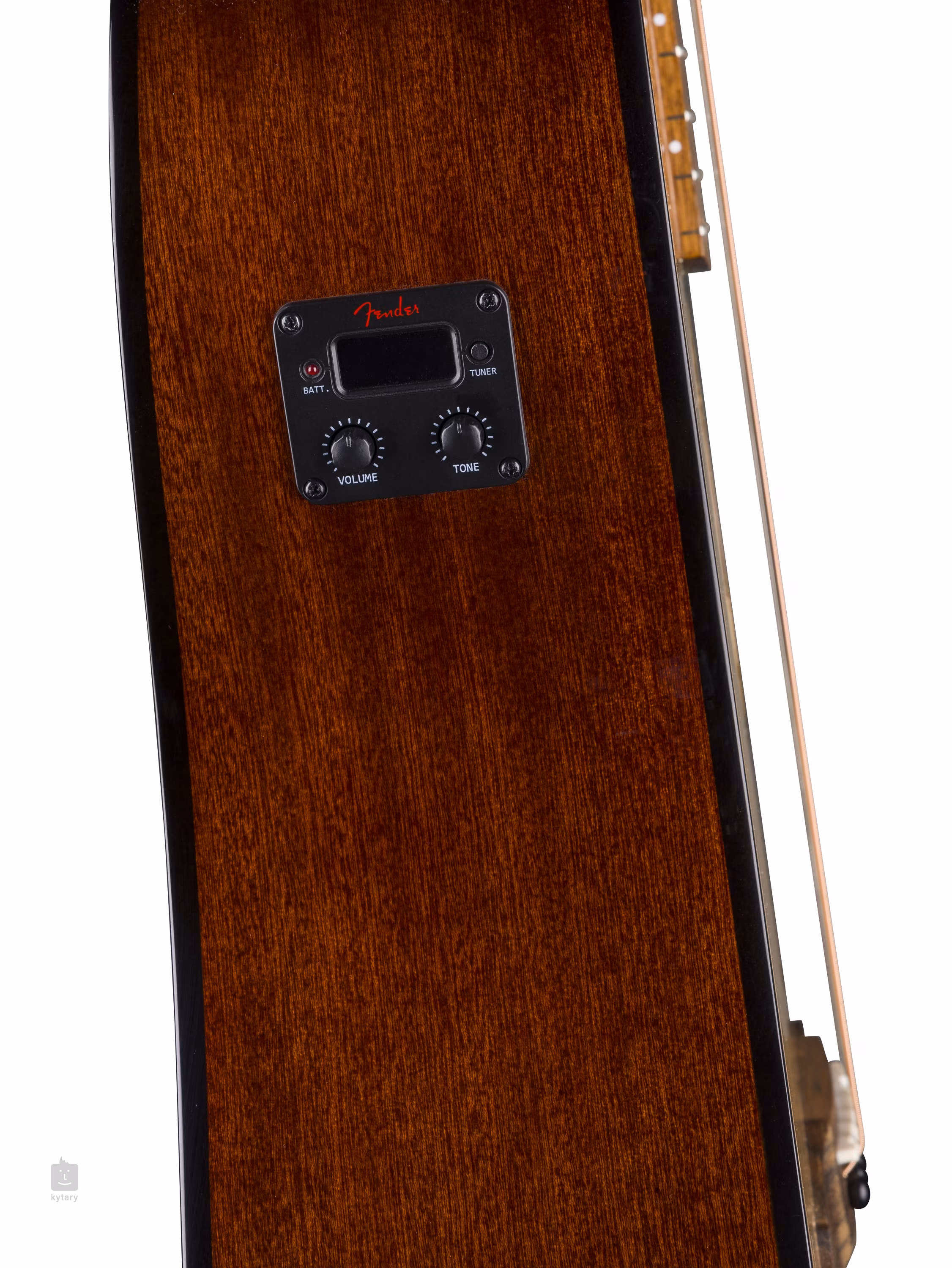 La sonorisation est assurée par l'électronique Fender avec contrôle du volume, contrôle de la tonalité et accordeur intégré dans la tête de la guitare. Les cordes sont maintenues par des mécaniques chromées moulées sous pression et une touche en noyer par l'intermédiaire d'une frette zéro en composite micarta. La finition élégante est accentuée par la tête de Jazzmaster designum avec une bordure noire et un pickguard noir simple couche.