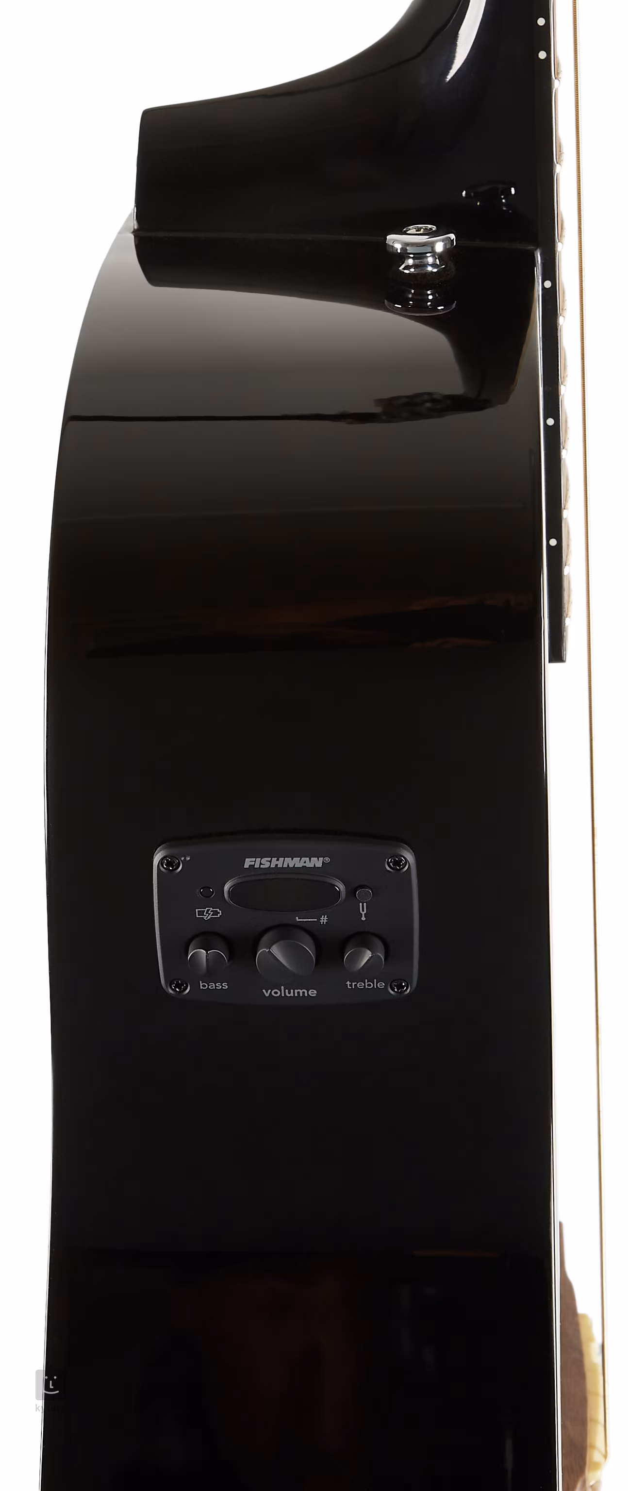 Un préamplificateur CD Fishman intégré sur le côté de la guitare avec contrôle du volume, égaliseur a deux bandes et accordeur intégré offre un systeme de sonorisation rapide et facile pour les performances en public ou les répétitions avec un groupe.