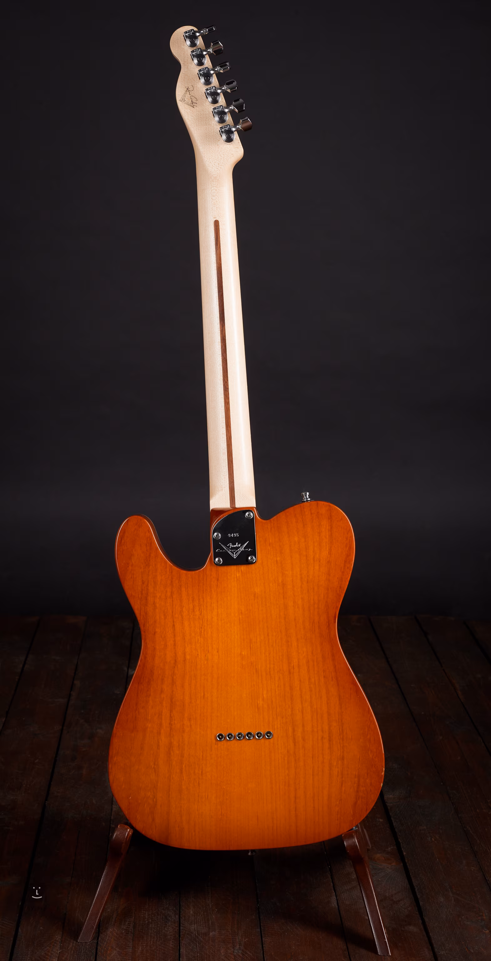 Une telecaster moderne de la plus haute qualité, signée par un véritable maître. La guitare est en excellent état. Elle est vendue en tant que bien d'occasion sous le régime de la TVA BAZAAR, y compris l'étui d'origine, dans lequel se trouve également le certificat d'origine.