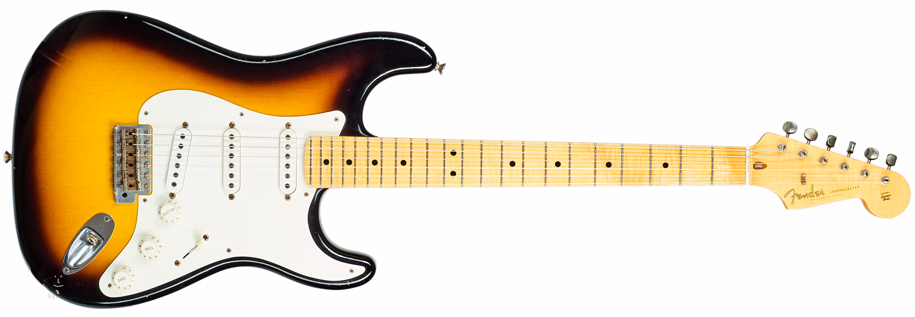 Une Fender Custom Shop Stratocaster customisée en 2015, construite en grande partie selon les spécifications d'Eric Clapton. Contrairement au modèle signature, cette guitare est équipée de micros simples standard et le corps est en aulne.