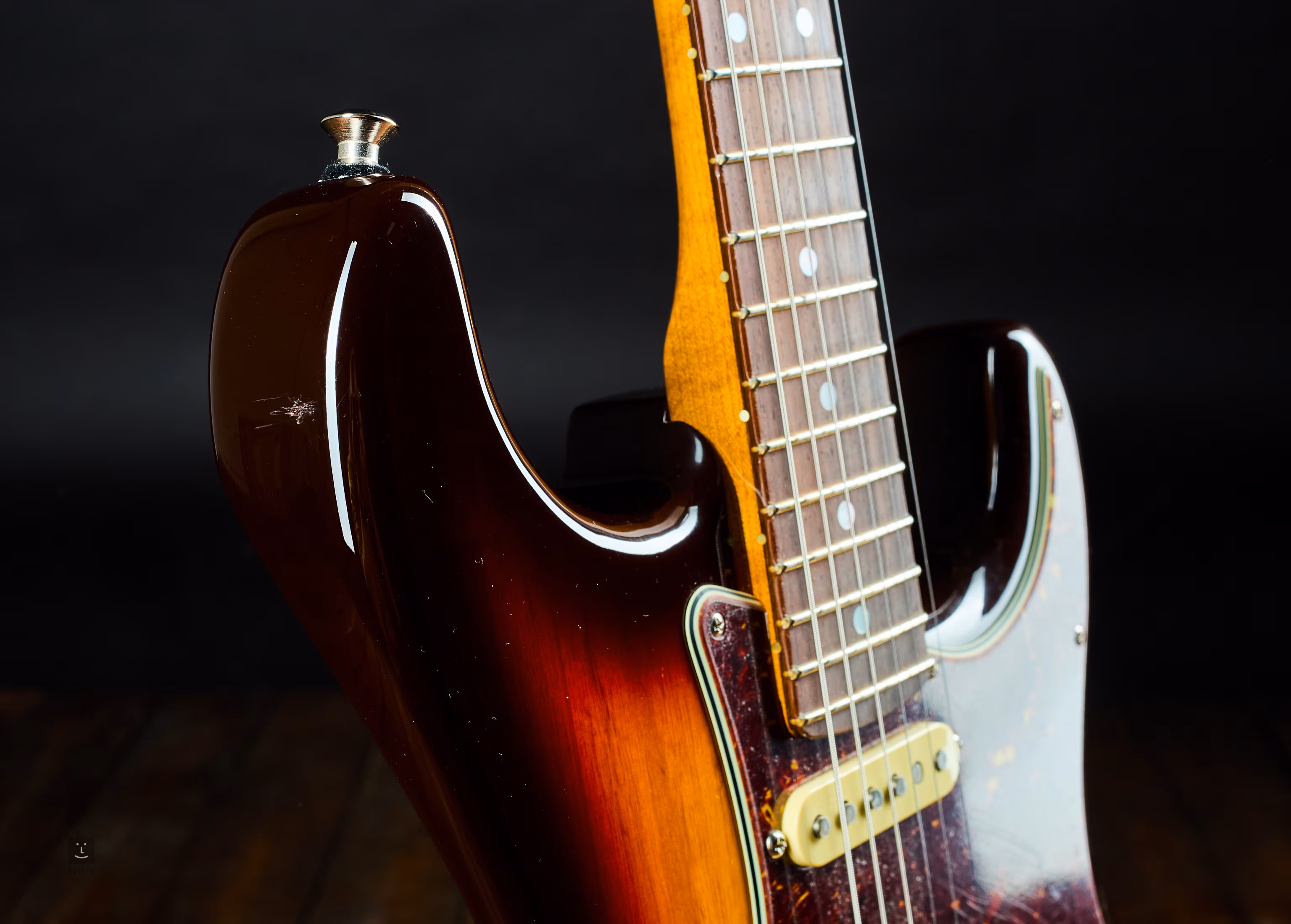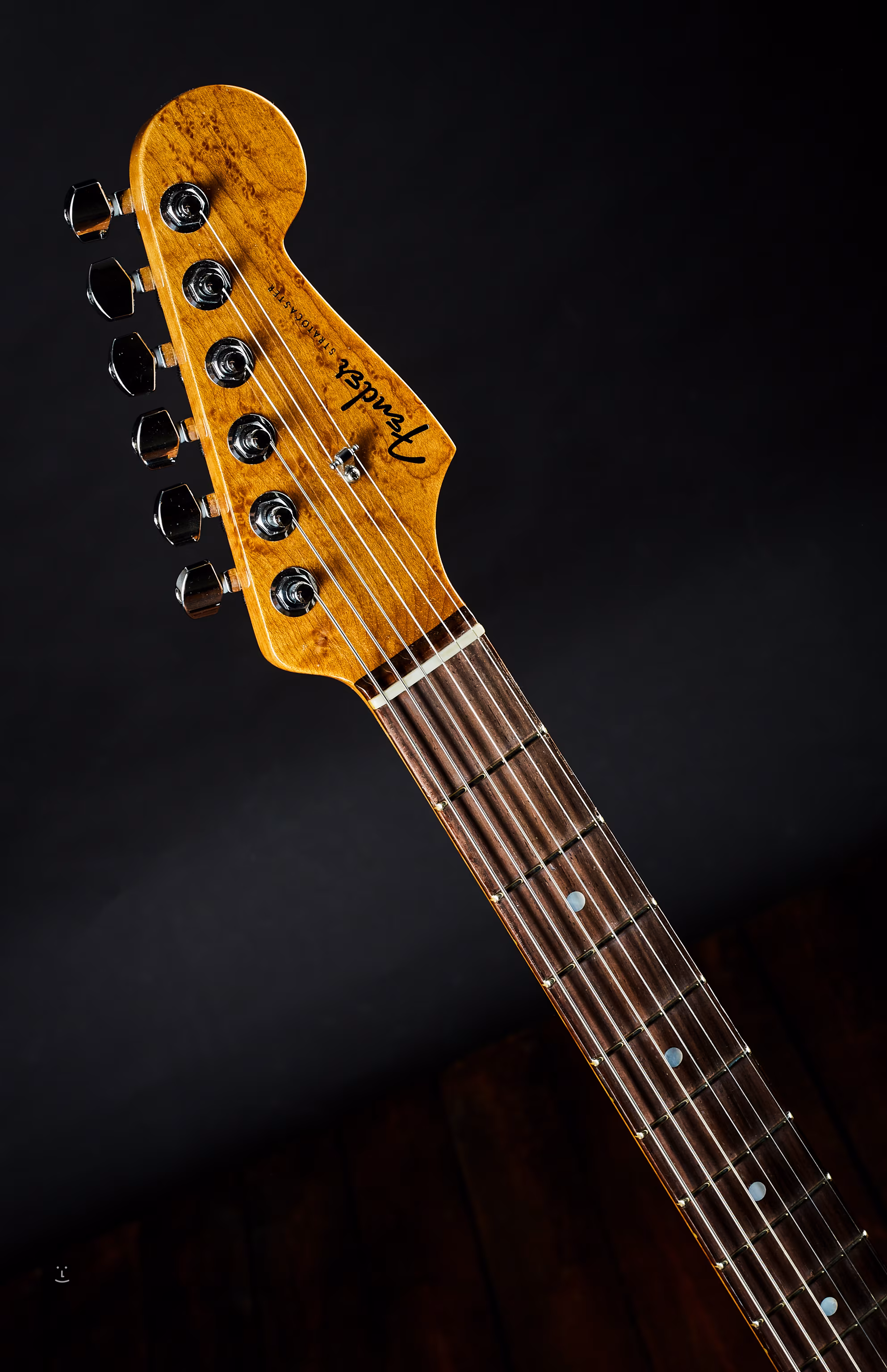 Tout le reste de l'instrument est traditionnel - le manche a un profil en "C ovale", et le son est porté par des micros Fender Custom Shop Handwound de 64 (avec un micro central à bobinage inversé/polarité inversée).