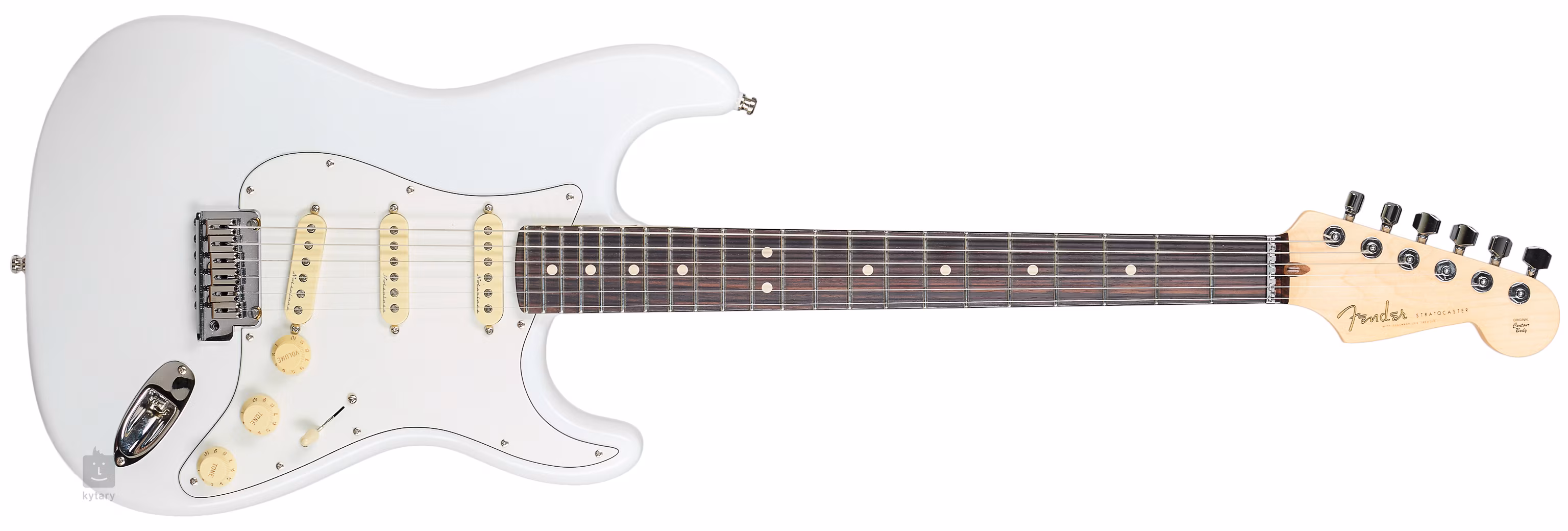 La Jeff Beck Signature Stratocaster RW Olympic White est le modèle signature du célèbre guitariste anglais qui a influencé plusieurs générations de musiciens. Le corps en aulne de la guitare est décoré d'une finition NOS. Le manche en érable plus étroit avec un profil Thin "C" confortable est collé à une touche en palissandre équipée de 22 frettes Medium Jumbo.