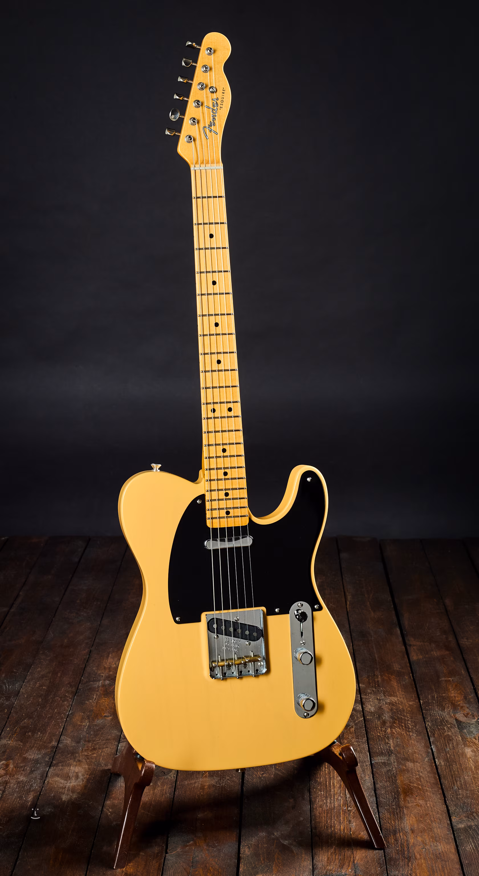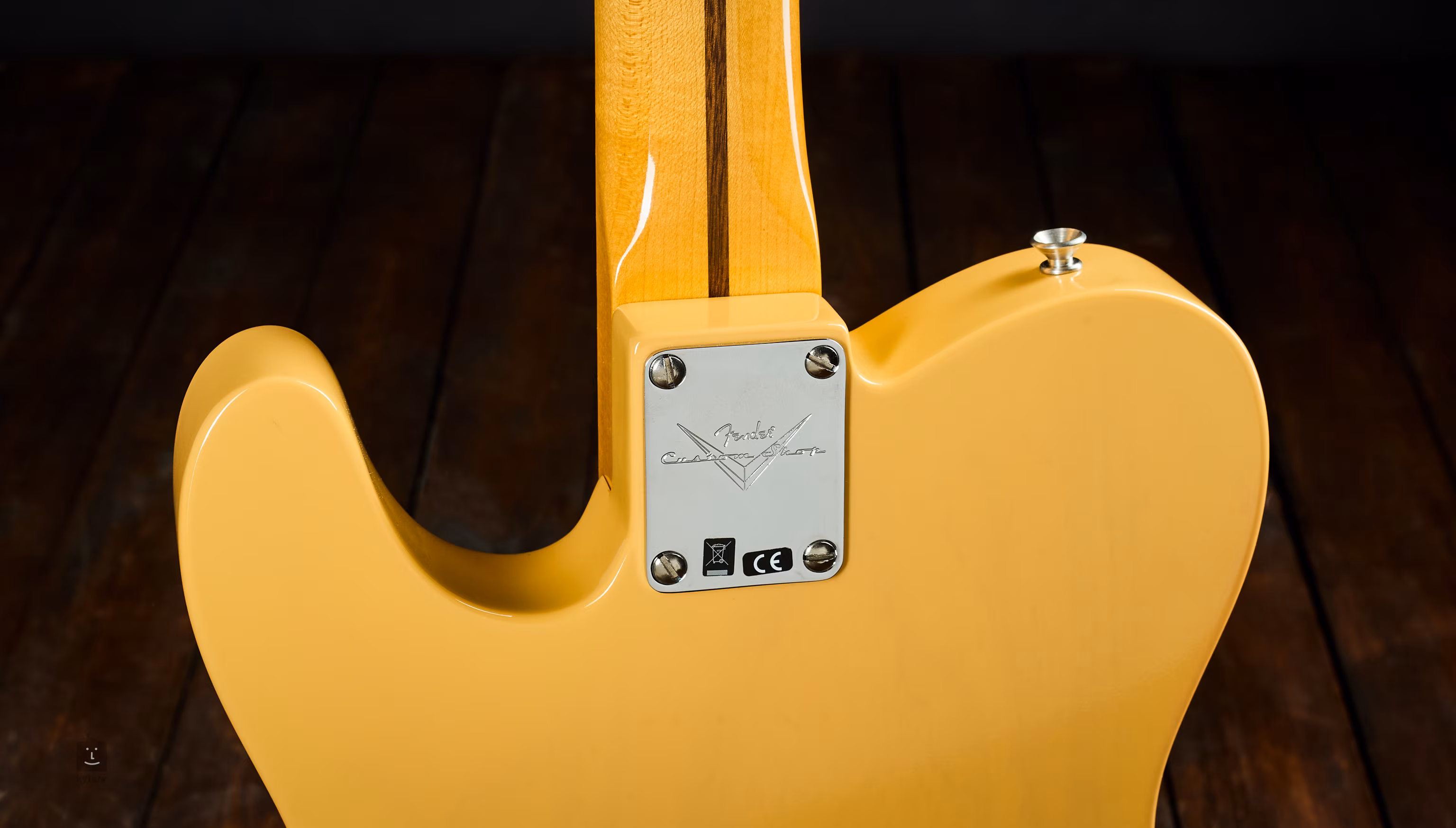 Le corps de la guitare est fabriqué à partir de deux pièces de frêne spécialement sélectionnées. Le manche monobloc en érable rift-saw présente un profil en "V" 10/56 et la touche est divisée par 21 frettes Medium Vintage (50085). Une caractéristique intéressante est le rayon composé de la touche (7,25 à la frette zéro et 9,5 au manche), que l'on retrouve également sur certains modèles Broadcaster/Nocaster d'origine.
