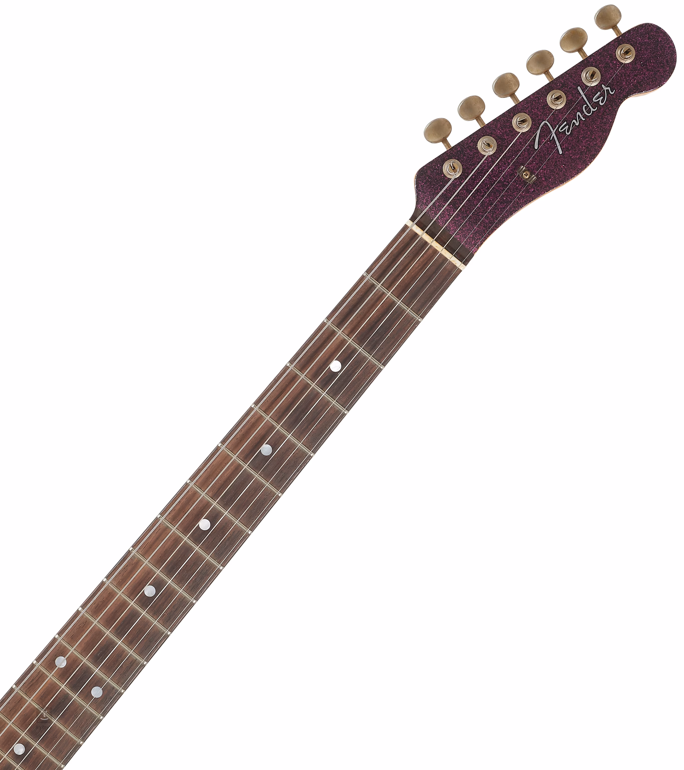 Les micros Twisted Tele du Custom Shop, bobinés à la main, confèrent à la guitare un son de guitare Telecaster chaud et puissant, avec une touche de caractère Strat. L'électronique Fat '50s offre un son légèrement plus épais, et la réponse des commandes de volume et de tonalité est précise et régulière, sans la perte typique d'aigus lorsque l'on baisse le volume. Les cordes sont montées dans les mécaniques de style vintage de l'entreprise et passent par un chevalet Tele avec trois sillets en acier à travers le corps.