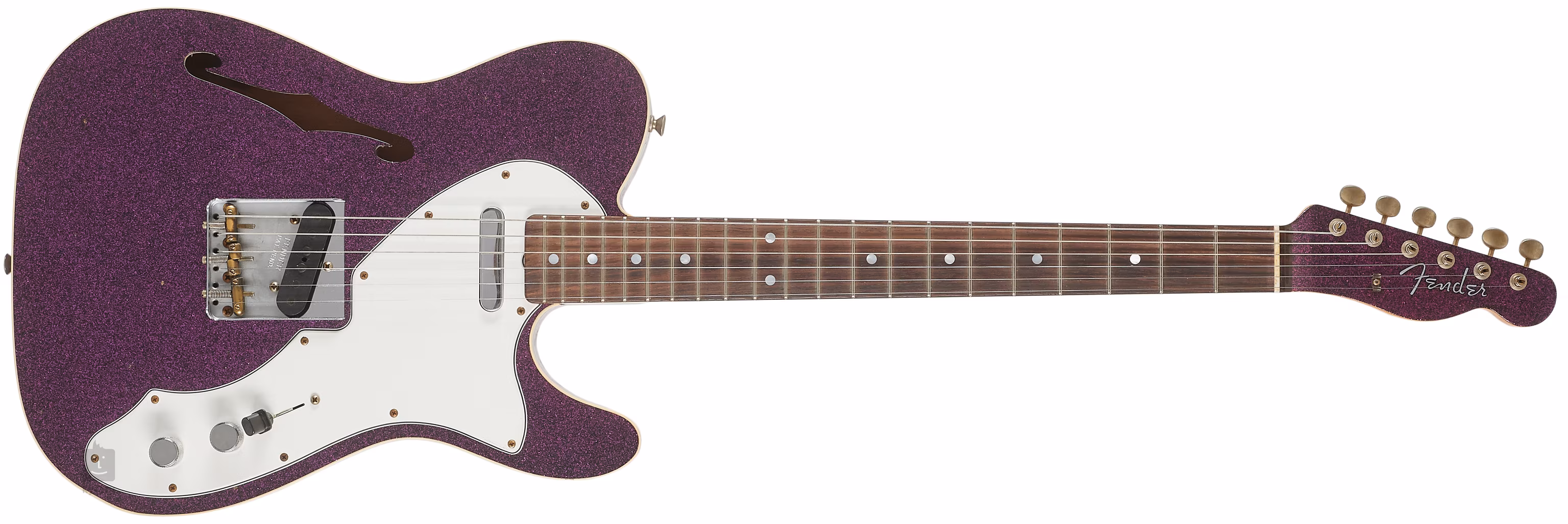 La Limited Edition '60 Telecaster Custom Thinline Journeyman Relic, 3A Rosewood Fingerboard, Aged Magenta Sparkle est une guitare électrique haut de gamme du Fender Custom Shop.
